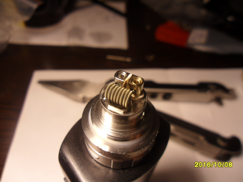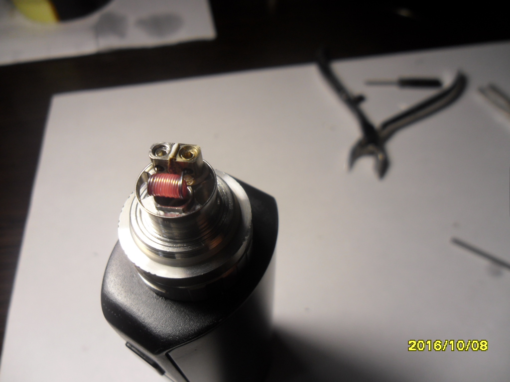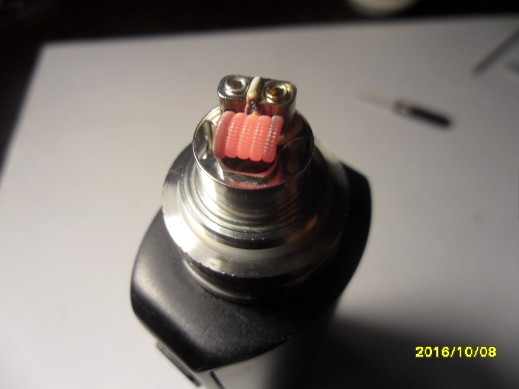 Получил я наконец-то свой Айс.Первые впечатления вроде-бы положительные,бак сделан добротно,"сбитый",люфтов нет ничего не шатается,очень удобная верхняя заправка,в машине заправлять самое то.С обслуживаемой базой уже не так все гладко...при огромном воздуховоде расстояние между стойками небольшое,и впихнуть туда что-то более-менее жирное будет проблематично,паралелька становится свободно,но на этом баке (в отличии от Сабтанка) вкуса она практически не дает,чтоб добиться более-менее нормального вкуса,нужно закрывать почти полностью подачу воздуха.На клэптоне дела обстоят получше,пара на порядок больше,да и вкус становится более насыщенным,если сравнивать клэптон на Сабтанке и Айсе,то здесь Айс выигрывает.На фьюзеде уже началась печалька (гребанные китайцы,в рот им кило галетного печенья),при прожиге спирали начал плавится изолятор между стойками)))Фьюзед для этого бака уже "тяжелая" спираль,хотя вкус дает неплохой.Пока поганял бак как смог,и на сколько хватило времени,однозначного ответа пока дать не могу,вроде-бы и все нормально,но не то что я ожидал от него...После 4-х часов мытарств с этим баком, взял Кубоид-Гриффин,сел,затянулся и наслаждался действительно вкусным паром...Фото моего бодания с Айсом (койлы специально не мотал,ставил то,что было под рукой).
