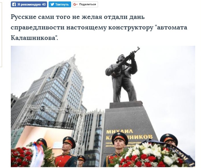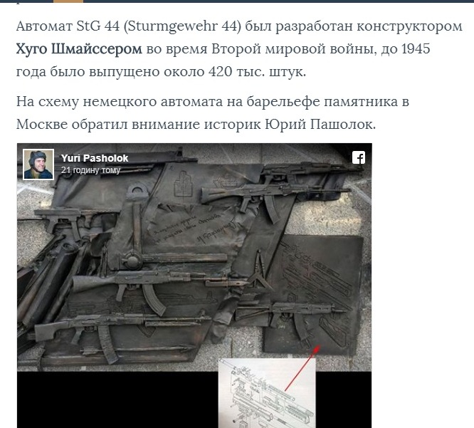 Кацапы открыли памятник Калашникову и на нем нарисовали чертежи настоящего изобретателя автомата. Ошиббку обнаружили и теперь думают, как ее исправить...