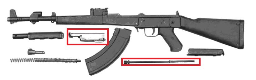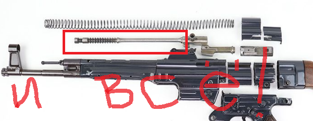 ...вот, давайте не бУдем про "...Калашников использовал...", потому как предмЕт "общитЫвался"... (а Миша даже "считАлку" держать в руках не умел...) Дальше - про "дозаряжание" - это хорошо и красИво, НО... ...деталей на "отдельном" поршне - 5 (пЯть - на пр. СВТ-40) а на АК-47 - ДВЕ (причем одна из них - шпилька) Дальше - КТО МЕШАЕТ сделать раму с окном для "дозаряжАния" ?? (как а ДП-27 только "вверх ногами" ?) З.Ы. ...еще рАз : первые (ранние) образцы прототипы создавались НЕ ПОД оружейные технологии ссср, ...потомУ - были варианты...