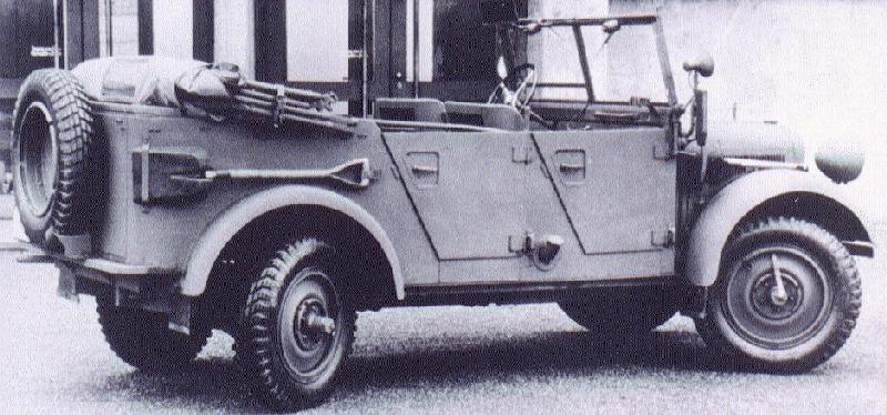 Первая попытка создания армейского автомобиля, превосходящего обычные кюбельвагены по проходимости , была предпринята фирмой Daimler-Benz в 1935 году.Им стала модель 170VG (выпущено 62 машины в 1935 году). В принципе это был тот же кюбельваген, так как за основу была взята гражданская модель 170V,но более “навороченный” в техническом отношении.Автомобиль был полноприводным (4х4) и оснащался управлением на все колёса (что и сейчас встречается довольно редко).В 1936 году последовала модель 170VL (выпущено 42 машины).В отличие от предшественницы управляемыми оставили только передние колёса.На обоих кюбелях устанавливался 4-х цилиндровый карбюраторный двигатель (1,7 л ,38 л.с.).Армия не проявила интереса к этим моделям,закупив небольшое количество машин(видимо из-за сложной,а значит и дорогой в производстве, конструкции). В основном эти кюбельвагены поступали на вооружение полиции и для службы в различные ведомства.