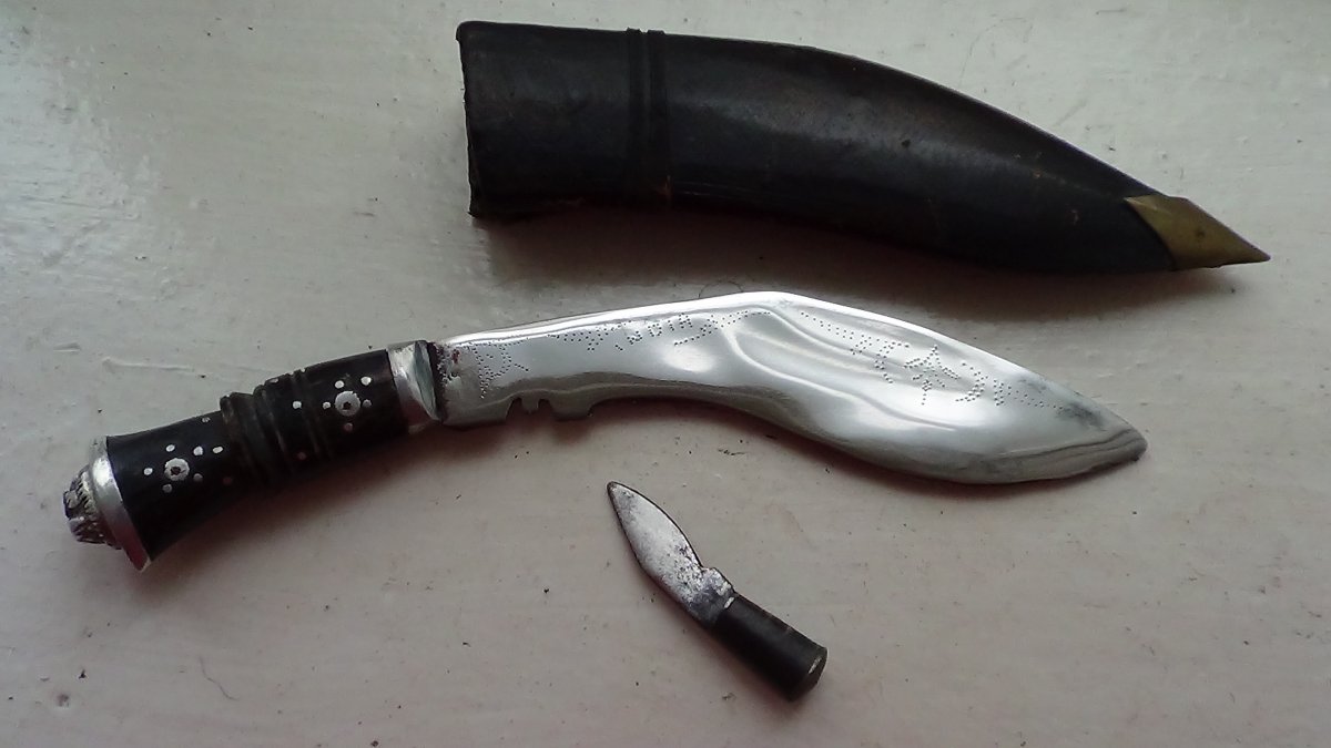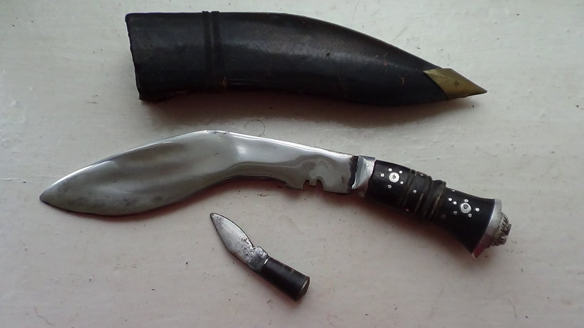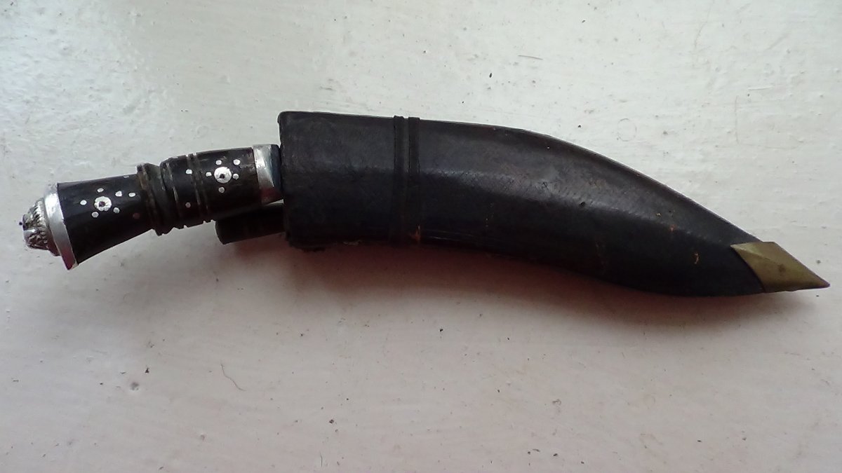 Рукоять выполнена из рога водяного буйвола. Кованый вручную клинок из высокоуглеродистой стали имеет зонную закалку. Ножны-кожа водяного буйвола. Общая длина-22см, клинок-14см, толщина по обуху-4мм Цена 1150грн.