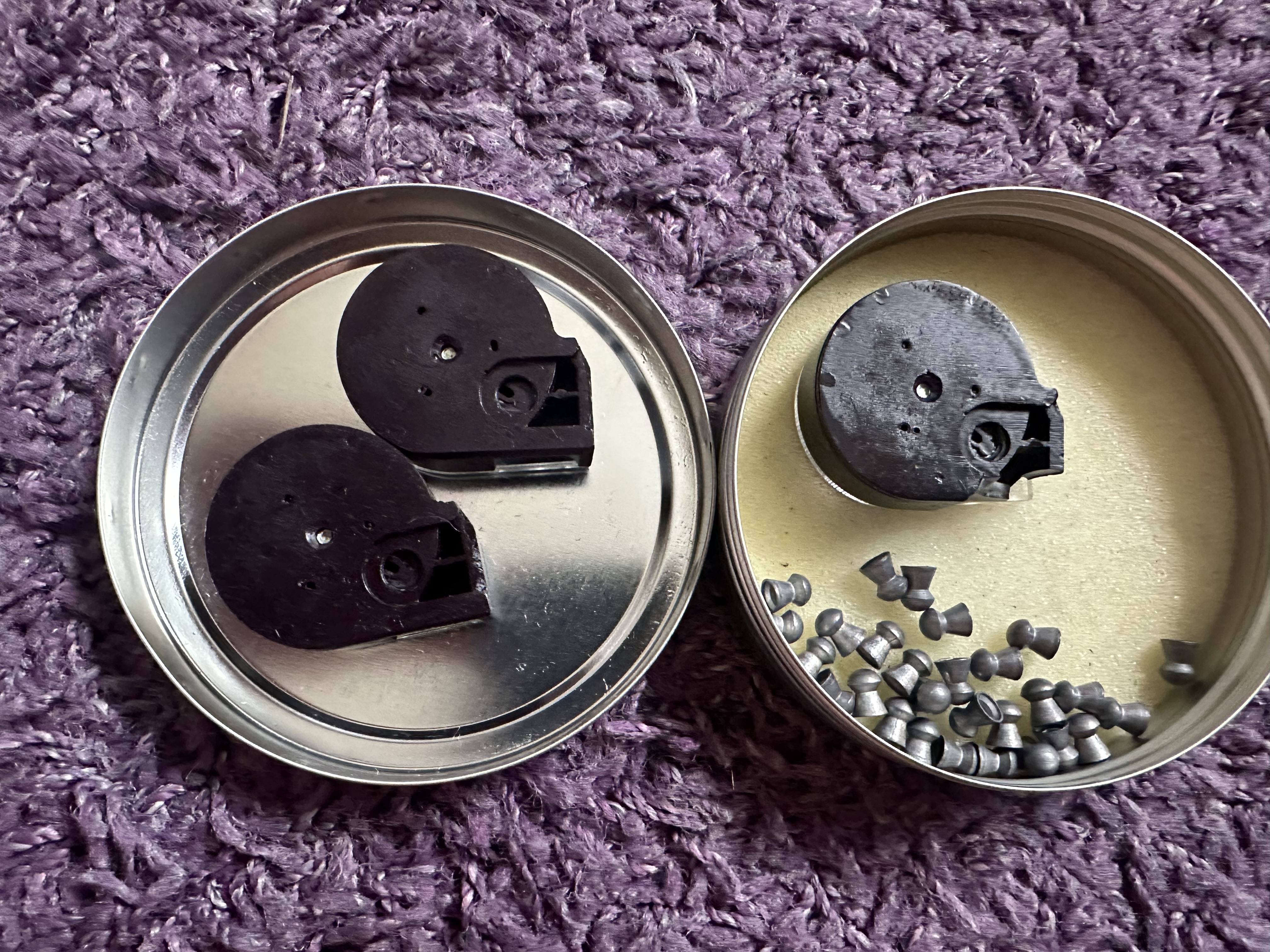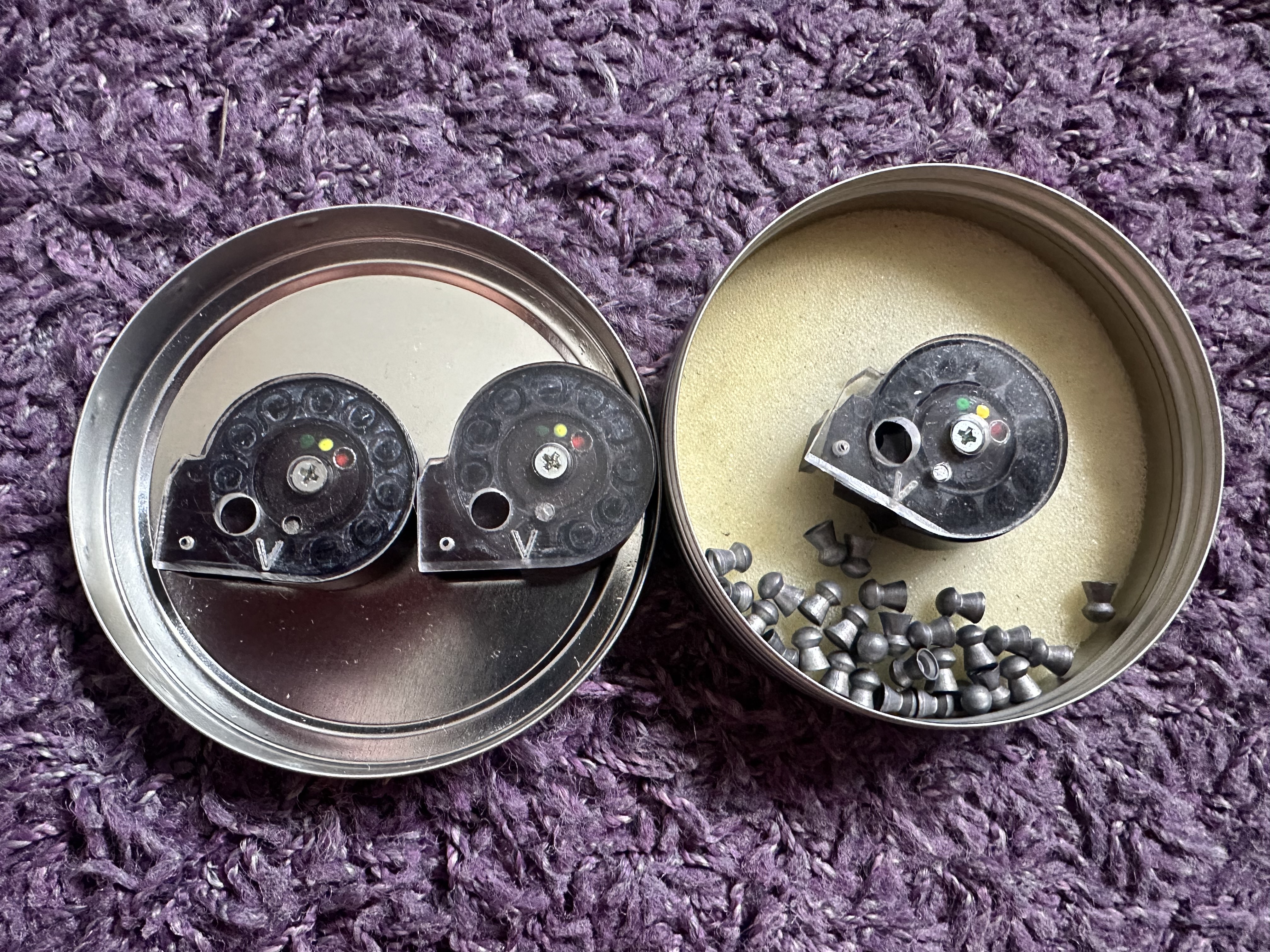 Перебрав трохи шкафчик, продам непотрібне. 1. 2шт марабани від Voyager в калібрі 5,5. Третій пошкоджений, але працюючий йде як бонус. Ціна - продано 2. 1шт марабан в калібрі 6.35 + пробний набір куль. (JSB 2,2 40шт; 1,645 40шт; нокаут 2,17 50шт). Ціна - продано 3. 1шт крутий дюралевий марабан 7.62 (здається від гвинтівки Scar) + 54 кулі JSB 2,9г. Ціна - продано 4. Кулі в калібрі 9мм JSB 5,25г 1 банка (100шт) та H&N Grizzly 1 почата банка (60шт з 85). Ціна - продано