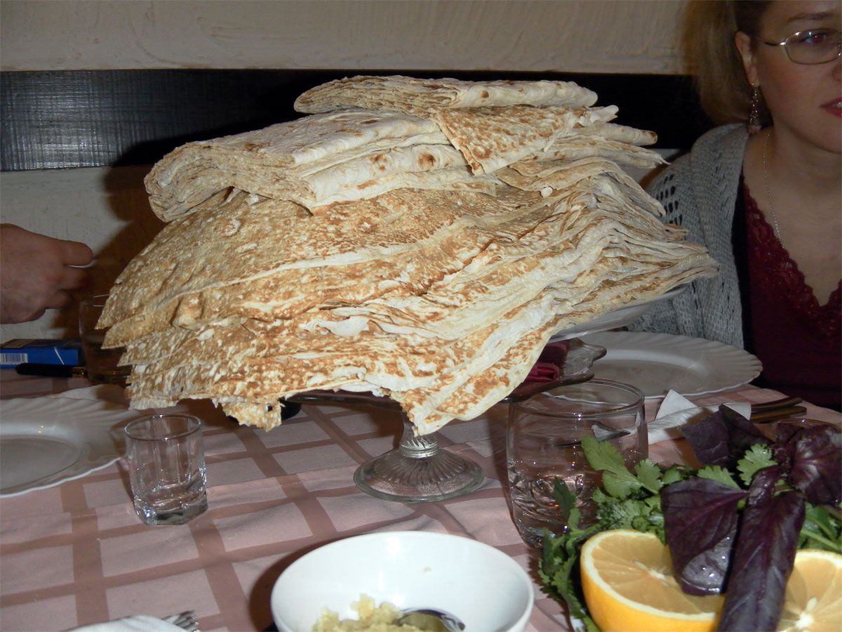Первое - Хлеб. Настоящие ценители хаша предпочитают есть его руками макая кусочки хлеба в бульон. Самое то - армянский тонкий лаваш, который предварительно надо подсушить. Большим листом лаваша накрываем тарелку с хашем, чтобы она быстро не остыла.