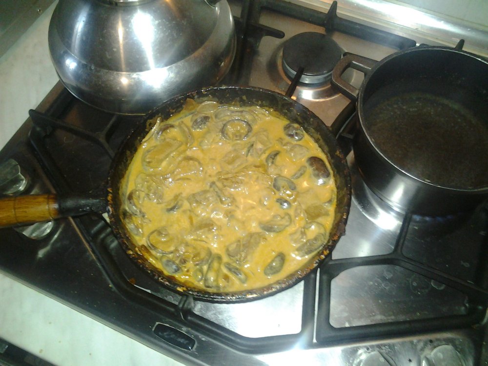 "Что вижу, то пою", как в том анекдоте. Взялся делать шиитаки. https://ru.wikipedia.org/wiki/Шиитаке До этого кушал их только в консервированном виде, а тут "перебирая запасы" обнаружил пакетик сушеных (видимо в суши-магазине как-то прихватил). Что сказать. Делал традиционно, пережарив с лучком и протушив в старой сметане + кусочками свинины добавил и приправы там всякие. Особенности - они жесткие, как переваренный кальмар, причем туши-не-туши. В этом некоторый плюс, поскольку можно забрасывать одновременно с тяжело развариваемым/мясом, не развалятся. Вкус интересный, я даже не возьмусь сказать, "о чем он", но не грибной. "Вязкие". Еще в истории называются "Императорский Гриб" - похож. Относительно дороговат (2X от обычных), но он стоит того
