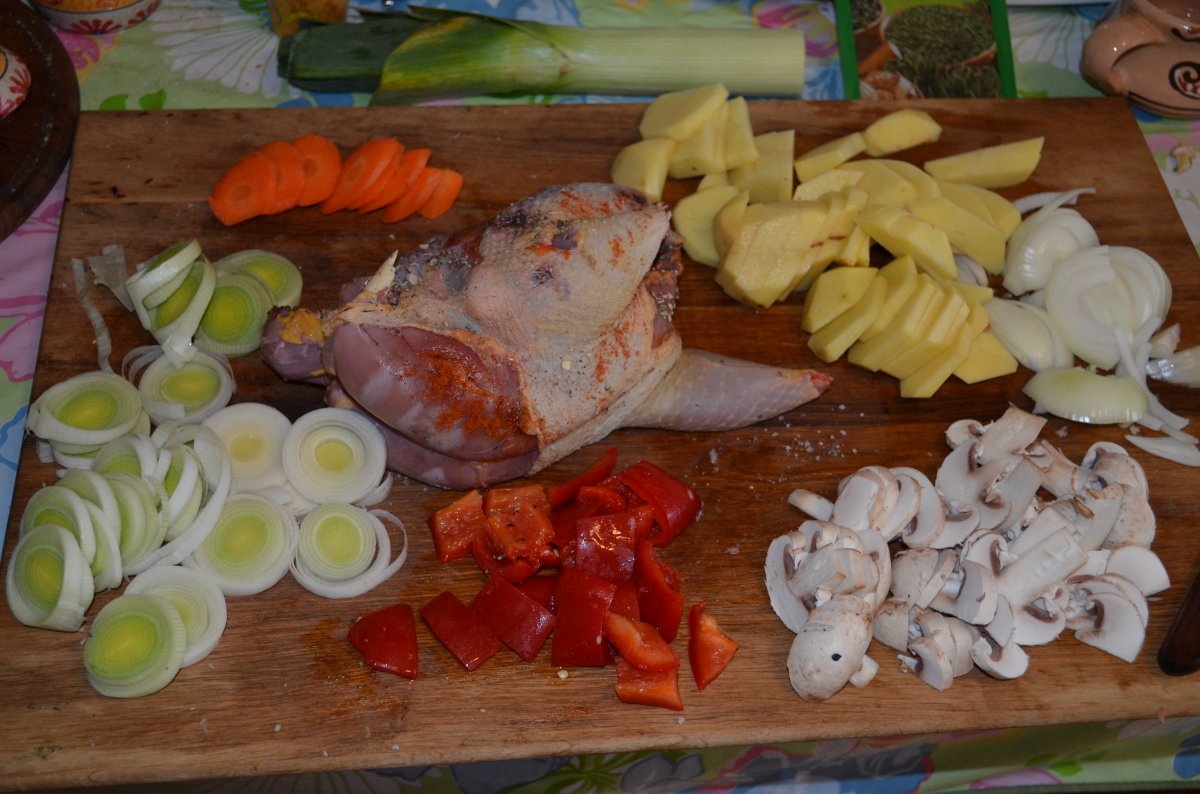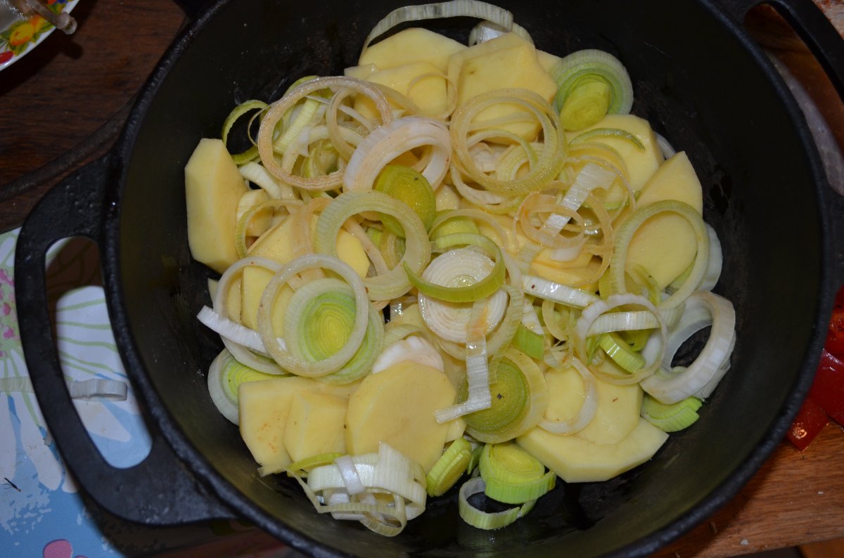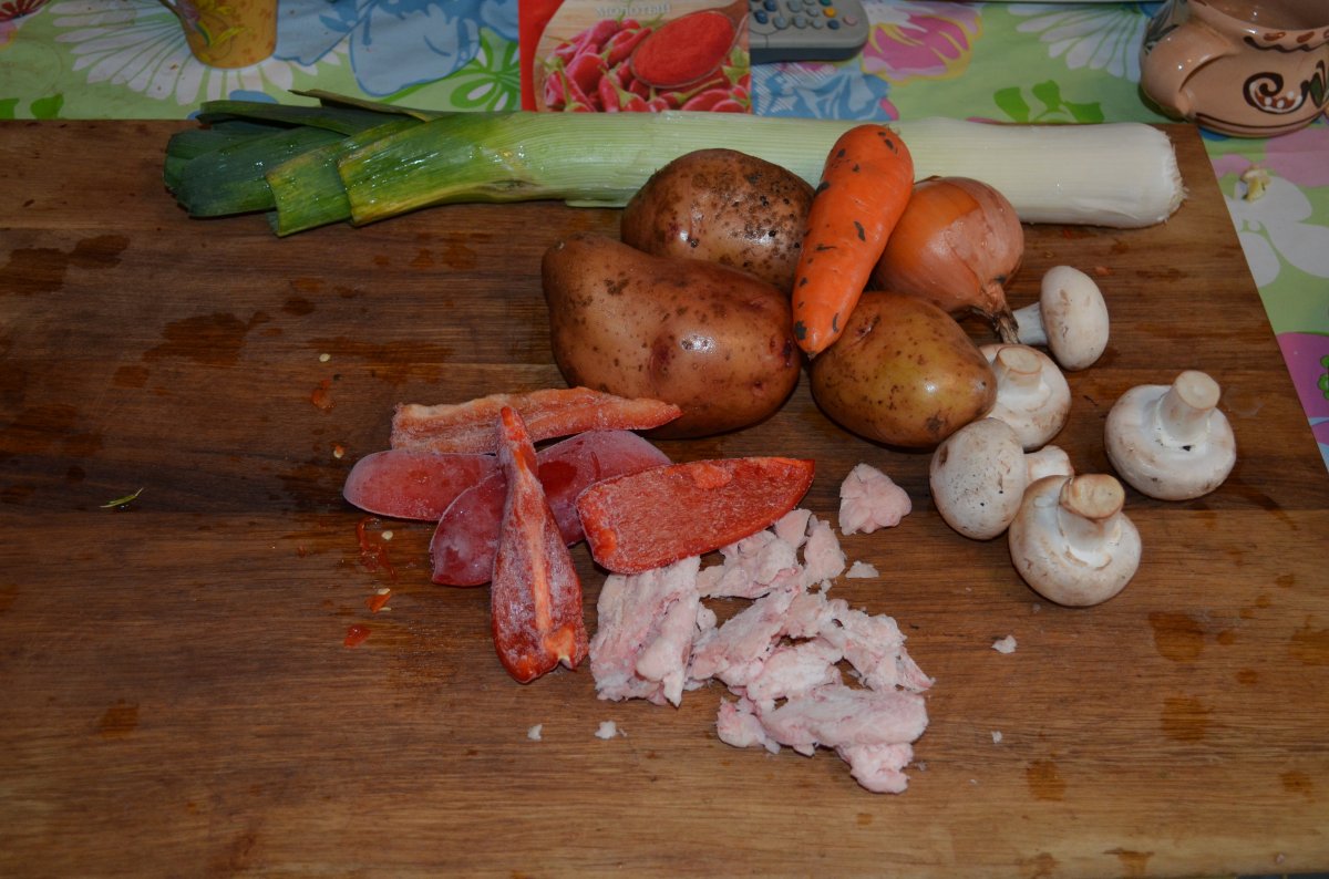 1-разводим кастрик 2-набор продуктов ( в данном варианте у меня 3 разновидности мяса -говядина 1кг200гр, одна куриная грудка обязательно с костью , и 300гр баранины на кости) 3- мясо довожу в термосе ТЕМЕТ со льдом(кубики из холодильника) сохран до 12 часов на любой жаре. 4-гусиный жир в горячий котёл , и топим его минут 15 5-рубим лук , перец , морковь,крупно 6- в котёл и обжариваем до золотистого цвета. 7,8,9, собственно мясо и мой походный ГрандВэй (хорош для всего и камыщи в воде срезать , и шурпу помешать в котле, и показать кому то) 10-11 в обжаренные овощи кладём мясо и заливаем водой 12- аджика из горького зелёного перца с грецкими орехами , делал сам, можно заменять магазинской , но моя лучше. 13- паста( на такой объём 2 пакетика) 14ваврим около часа, огонь не интенсивный 15. картошку крупно режем 16 в котёл картошку и оливки 17 варим до готовности картошки (минут 15) 18 снимаем с огня 19 зелени побольше и погнали. такой шурпы дома не приготовишь , в буфете не купишь, это супер харч.
