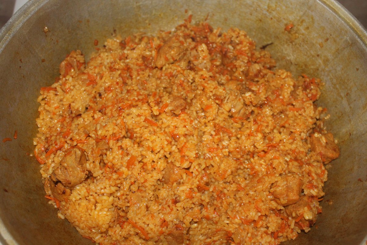 Пловчик делаю только по этому рецепту! Мсяо - только баранина! Плов получается шикарный!! Посуда За неимением полноценного казана рассматриваем вариант с антипригарным Wok'ом или титановым толстостенным аналогом казана, которые так активно промоутятся последнее время в Wal-Mart'ах (дорогие, заразы, блин!), который, в отличие от тефлоновых жестянок, способен заменить чугуний если не по сумме свойств, то по крайней мере по массе и теплоемкости. Можно купить обычный чугунный без всяких покрытий, который есть в продаже. Как я уже упомянал, можно использовать и утятницу. Вообщем самое главное- толщина стенок и теплоёмкость. Мой казан, например, обычный, без всяких покрытий, следующих размеров: диаметр у крышки 28 см; у основания 22 см; 16 см в высоту. Такой казанчик может до отвала накормить человек 8-10. Ингридиеты: Расчёт продуктов ведут от количества риса. Рис используется толстый зернистый, но не longcorn. У longcorn совершенно другой вкус. Рис можно купить у китайцев(sushi rice), у турков или у русских, как я делаю. На вид он овальный. На 1 кг риса берут от 0,75-1 кг баранины, желательно окорок. Морковь 0,75 кг. Лук репчатый-0,5 кг. Чеснок 2-3 головки, нечищенного, целиком. Специи: 1. Зира. По английски Cumin. Можно купить в азиатских магазинах и супермаркетах 2. Барбарис. В магазинах ни разу не видел, поэтому везите из Ташкента. 3. Молотый красный перец 4.Красный молотый сушеный болгарский перец-Paprika mild. Продаётся во всех магазинах. 5. Зарчибэ. По английски Kurkuma. Можно купить в азиатских лавках. Зиру ни в коем случае не путать со схожим на вид kummel, красный острый перец молотый, молотый сушеный болгарский перец(paprika), барбарис(если нет его не надо ничем заменять) который продаётся в азиатских магазинчиках, зарчибэ(порошок из корня иранского растения, добавляетя для золотистого цвета. Если нет, то не надо заменять шафранами и прочим ). Всё!!! Это стандартный набор любого УЗБЕКСКОГО плова. Ничего другого. Да кстати, не обязательно ехать в Ташкент за настоящими специями. Все специи можно приобрести в Европе и ничем не хуже ташкентских. Процесс Перед началом можно чуток выпить за результат, только не увлекайтесь , ибо процесс, конечно, вещь захватывающая, но кушать-то что-то надо будет, а с возрастанием количества выпитого, как известно, женщины хорошеют, а закуски вкуснеют, причем сильно . Рис промыть 5-6 раз, замочить в подсоленной, тёплой воде. Мясо нарезать кусками с пол кулака. Окорочные кости нарубить с кусками мяса на 2-3 части. Морковь используют жёлтую-она не такая сладкая как оранжевая. Но к сожалению в Германии ни разу не видел жёлтой. Поэтому берём оранжевую и нарезаем соломкой(не кубики и не кружочки). Лук шинкуют кружочками. Разогреть масло без всяких там добавок. В Узбекистане на празники использут Кунжутное(sesamol). Можно подсолнечное. Налить около 150 гр, Огонь сделайте сильным. То что масло прокалилось и дошло до готовности можно определить по осветлению масла и (возможно) по появлению беловатого дымка. Некоторые определяют готовность шепоткой соли (она должна как бы отскакивать от горячего масла) или попросту плюют в казан. С последним осторожнее! Масло может стрельнуть, получите серьезный ожог, а то и вообще без глаза останетесь. Бросить сначала мясо с костями, обжарить на сильном огне до румяной корочки, добавить остальное мясо и жарить всё до румяного цвета. Для ориентира: жарка мяс