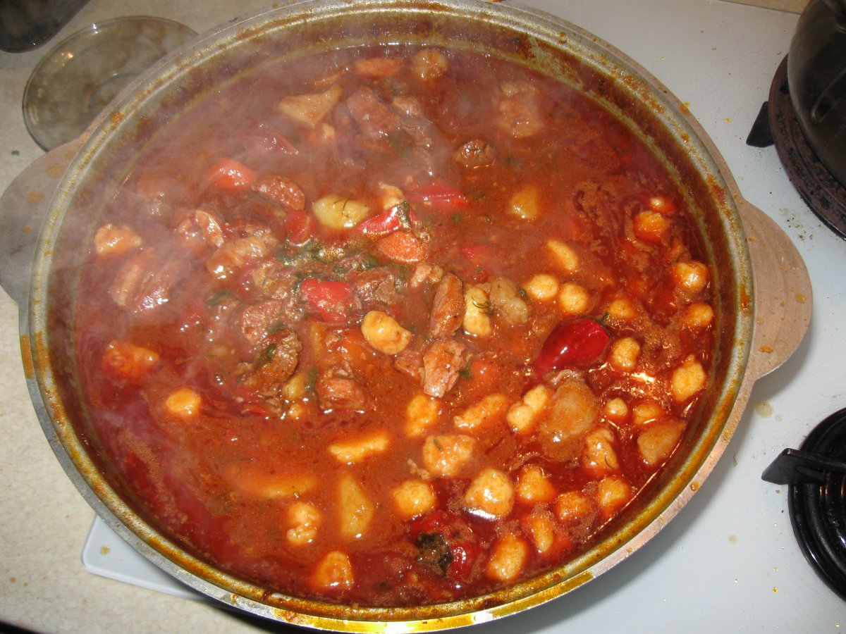 Жодної проблеми - брав оцей рецепт http://www.edimdoma.ru/retsepty/69488-bograch-vengerskiy-gulyash-po-zakarpatski та готував бограч. Трішки змодифікував: сало брав нормальне з пророслю (не люблю копченого), телятини не давав (не любимо), з м"яса було 0,77кг ошийка коров"ячого, 0,6кг копчених свинячих ребер, та 0,3кг пікантної ковбаси чорізо. Чіпетки краще робити на воді - на яйці вони тверді. От і усе - смачного!