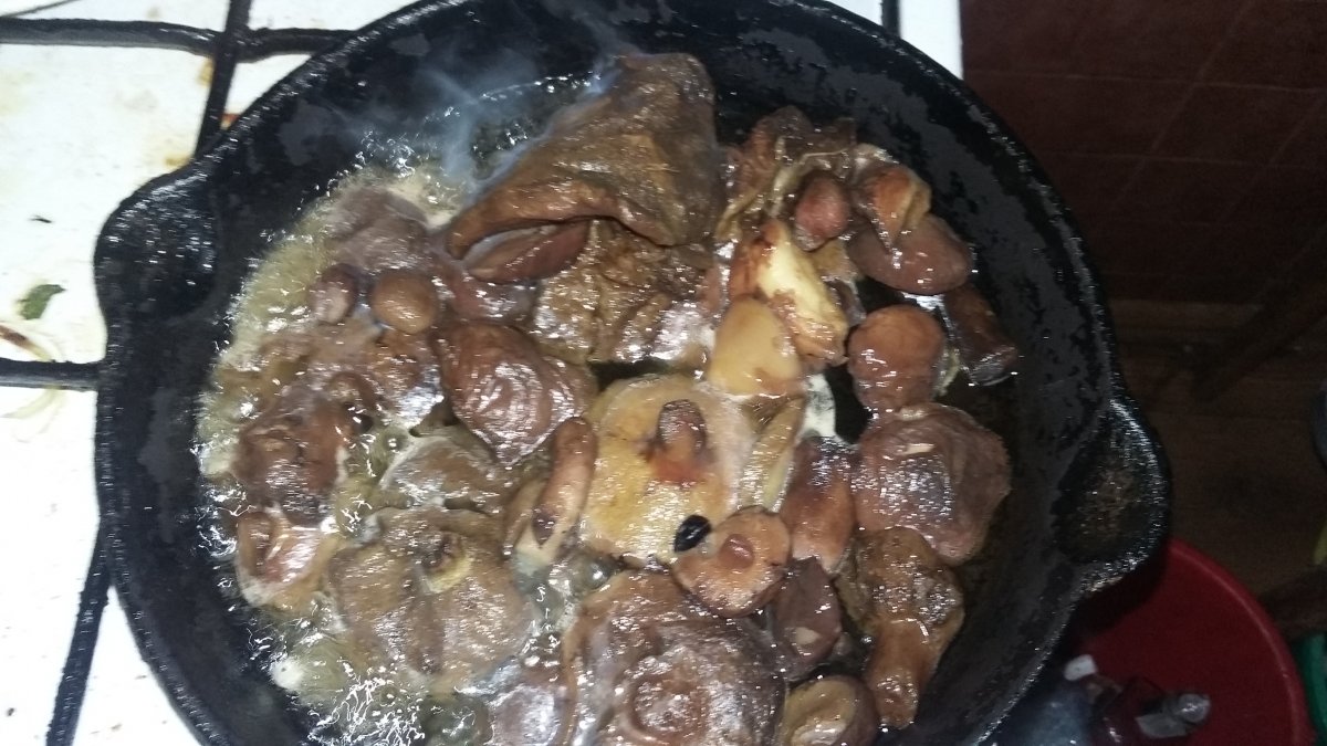 Оце дивився на оці смаколики, слюни пускав та проковтував, аж не витримав та зобив з оказії старого Нового року та моєї річниці отаку вижерку: Попереджуючи ваші питання пояснюю: це був (не так давно) дикий кабанчик, а саме шинка та лопатка з нього, тушковані на гусячим смальцю разом із каберне та чорносливом з сухими грушками та яблучками.