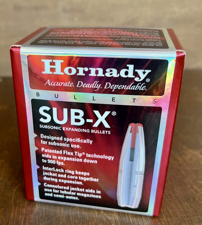 Виробник : Hornady Тип : SUB-X Куля : 30cal=308/3006/300wm Вага : 190gr 12.3грамів Балістичний коефіцієнт : G1 BC = 0.437 Ціна : 69$ пачка 100шт. Замовлення питання в п.п.