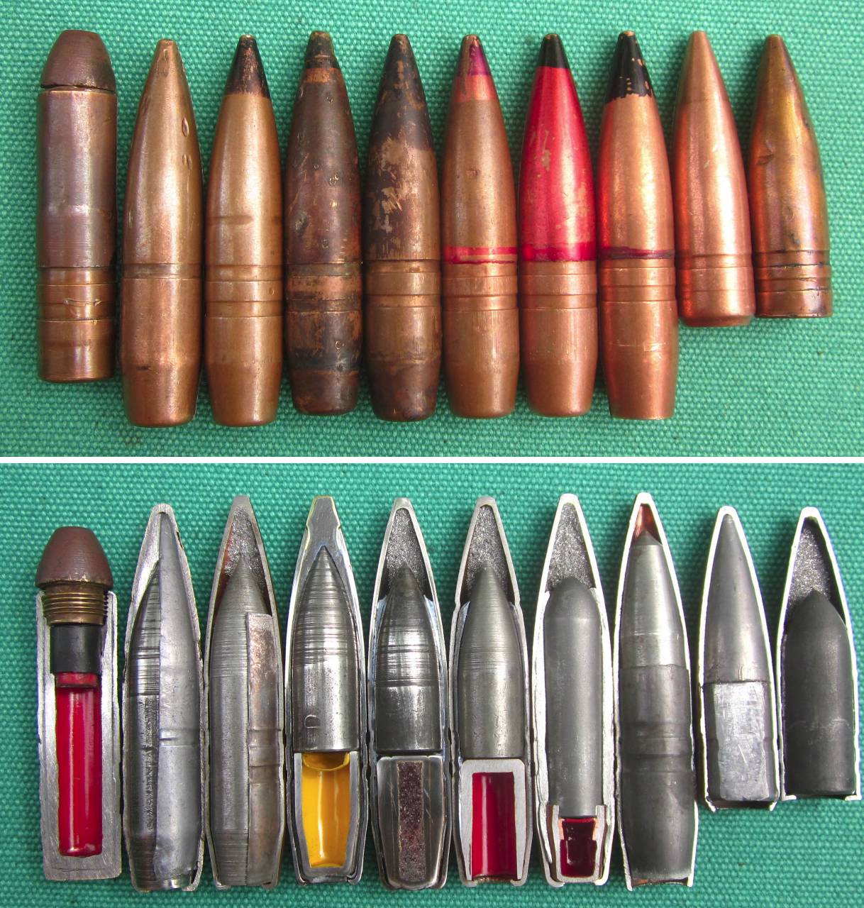 Що є,то є.Куля витерта об штани,наріст іржі зішкрябав з денця ножиком.На зразках бронебої з чорними носами мають два пояски,тут -один...