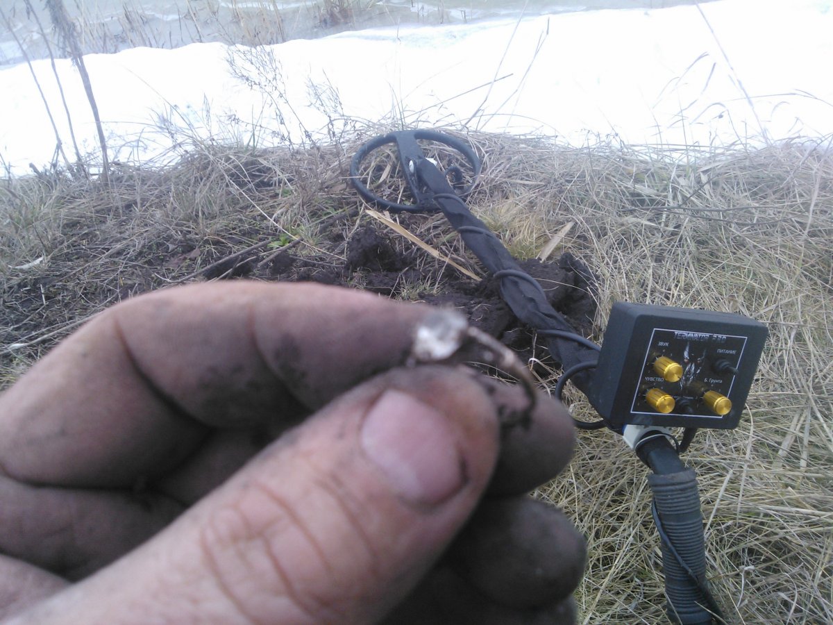 Ось сьогоднішній 2 часовий вихід на те поле.Здрасті.Приїхав з копу.Рішив трохи розвіятись і вигуляти Термика.Ходив по траві,копати можна але місцями земля ще мерзла.Ходив по дуже вибитому мною місці ,але находки всеодно є.Ще до цього всього захитали кришечки з пініціліну, штук 20-30 вирив,там мабуть коровам вакцинацію робили.Ну і проволки з пів кіла попалось і три ходячки.Такшо 25-ка на 18кг відпрацювала сьогодні харашо,по мокрому була більш-менш спокійно з чуйкою на 3.3 і БГ на 6. Изображения:
