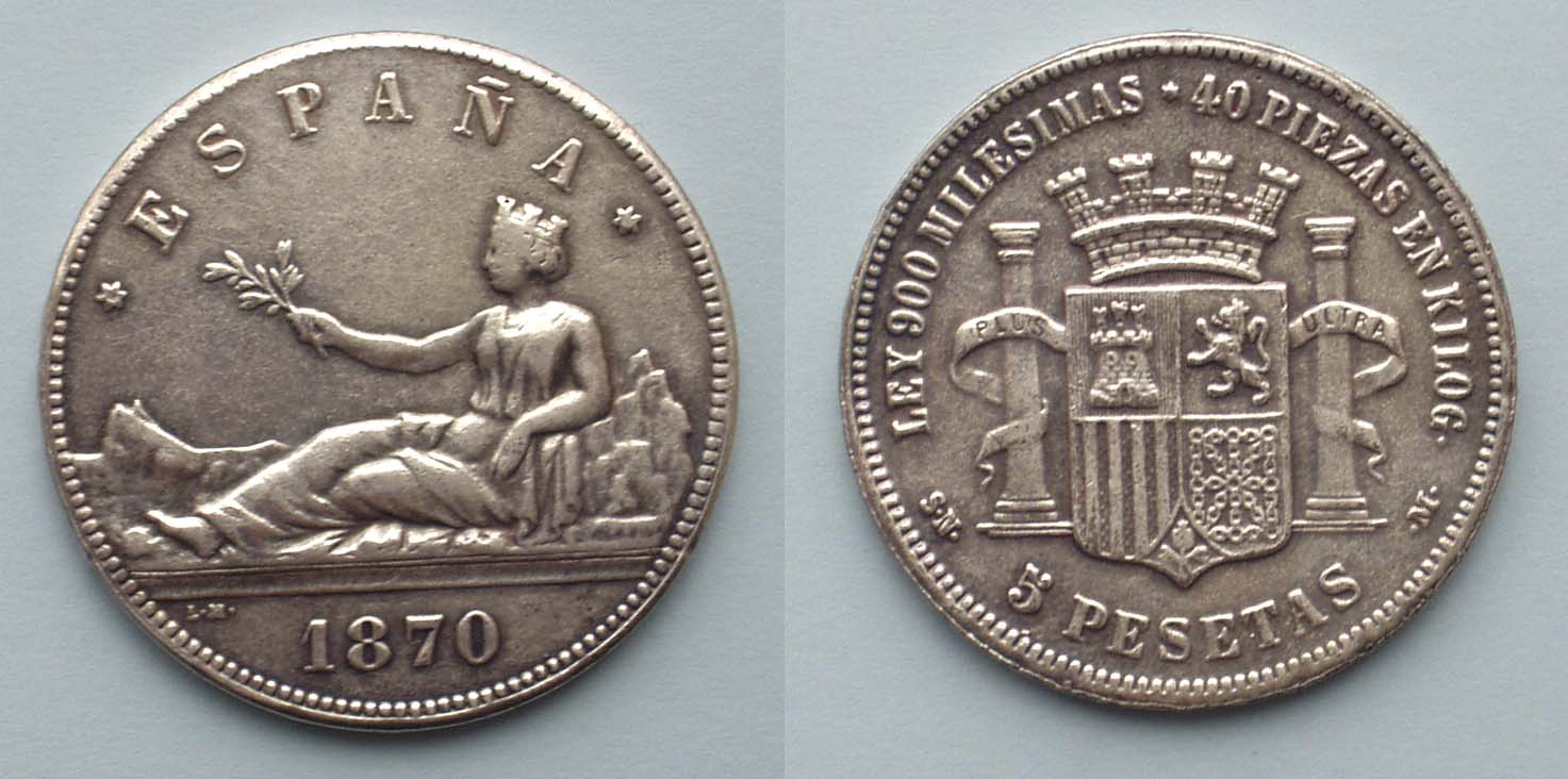 5 юбилейных (60 лет правления) Франца Иосифа II более не нужны. Спасибо. Но помимо прочего необходимы 5 песет временного испанского правительства. Также рассмотрю иные серебряные варианты монет Латинского валютного союза.