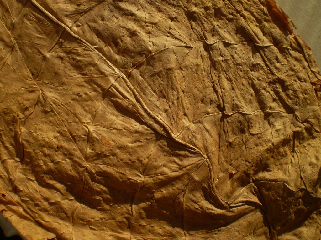 Пожалуй, как раз для такого случая подойдет, как никакой другой, сорт Тернопольский-14. Надежен, словно автомат Калашникова. Не болеет (это очень важно). Уход за ним - самый обычный, без плясок с бубном, как за другими табаками. Вырастает за два метра, лист крупный - урожая с пары десятков стеблей на долго хватит! Фактура листа очень хороша, вот на фото - Тернопольский, взращенный на супеси. Крепок, чертяка (но это еще и от грунта зависит, от проведенных пасынкования и вершкования). Отферментировать, смешать с буркуном, да в люльку - так и Дюбеков не надо.
