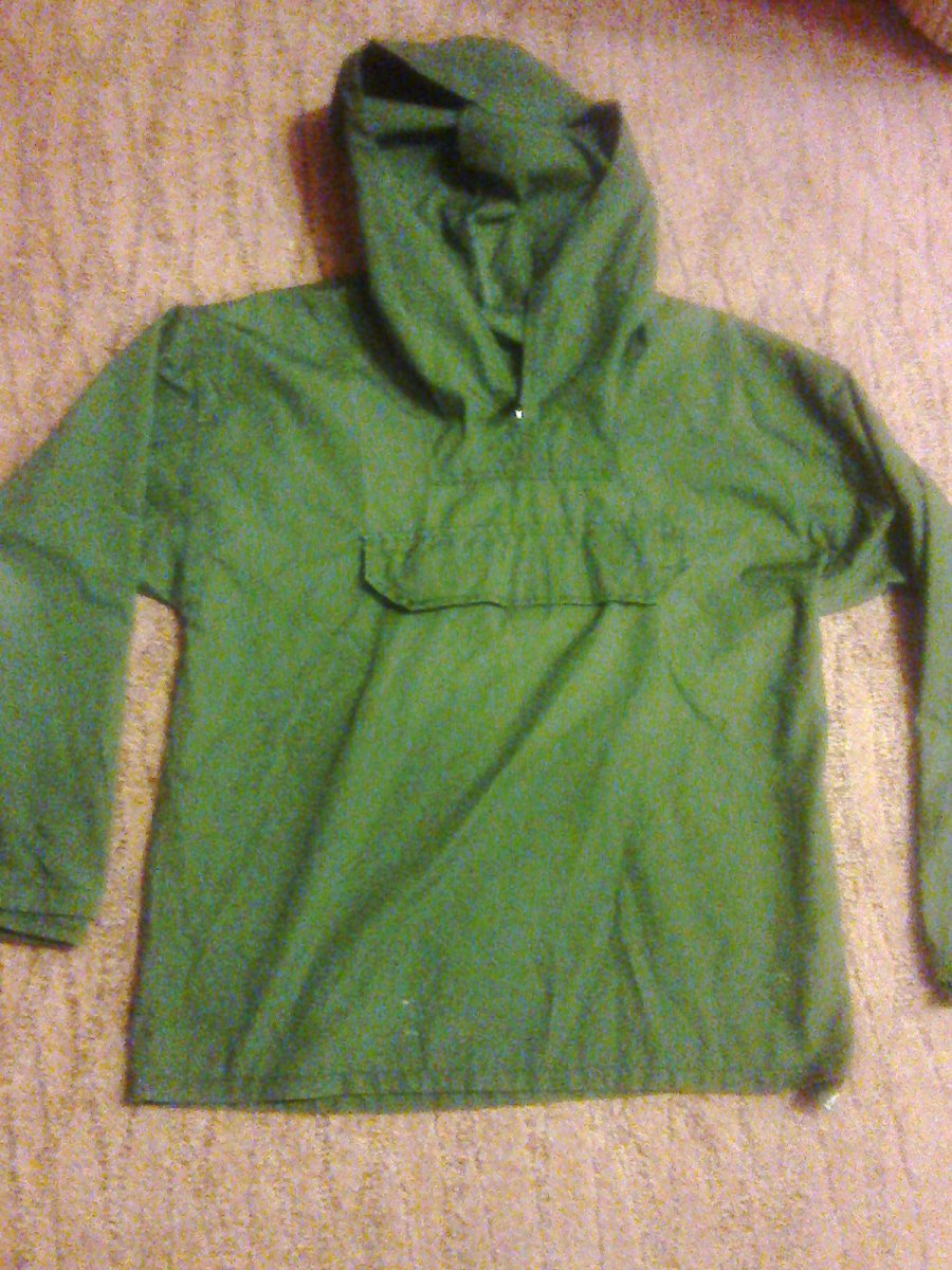 Анорак от бренда Amskov. 67 % poliester 33% bomuld. Цвет олива. Состояние на 4+. Очень легкая и тонкая, фото в сложенном виде есть. Без повреждений и ремонта. Незначительные потертости на манжетах, пара загрязнений на фасаде (отстираются). Бирка с размером срезана, поэтому замеры: длина по спине 68, плечи 54, под мышками 55, рукав от ворота 71, рукав от плеча 52, рукав внутр. 47. Цена 150 грн.