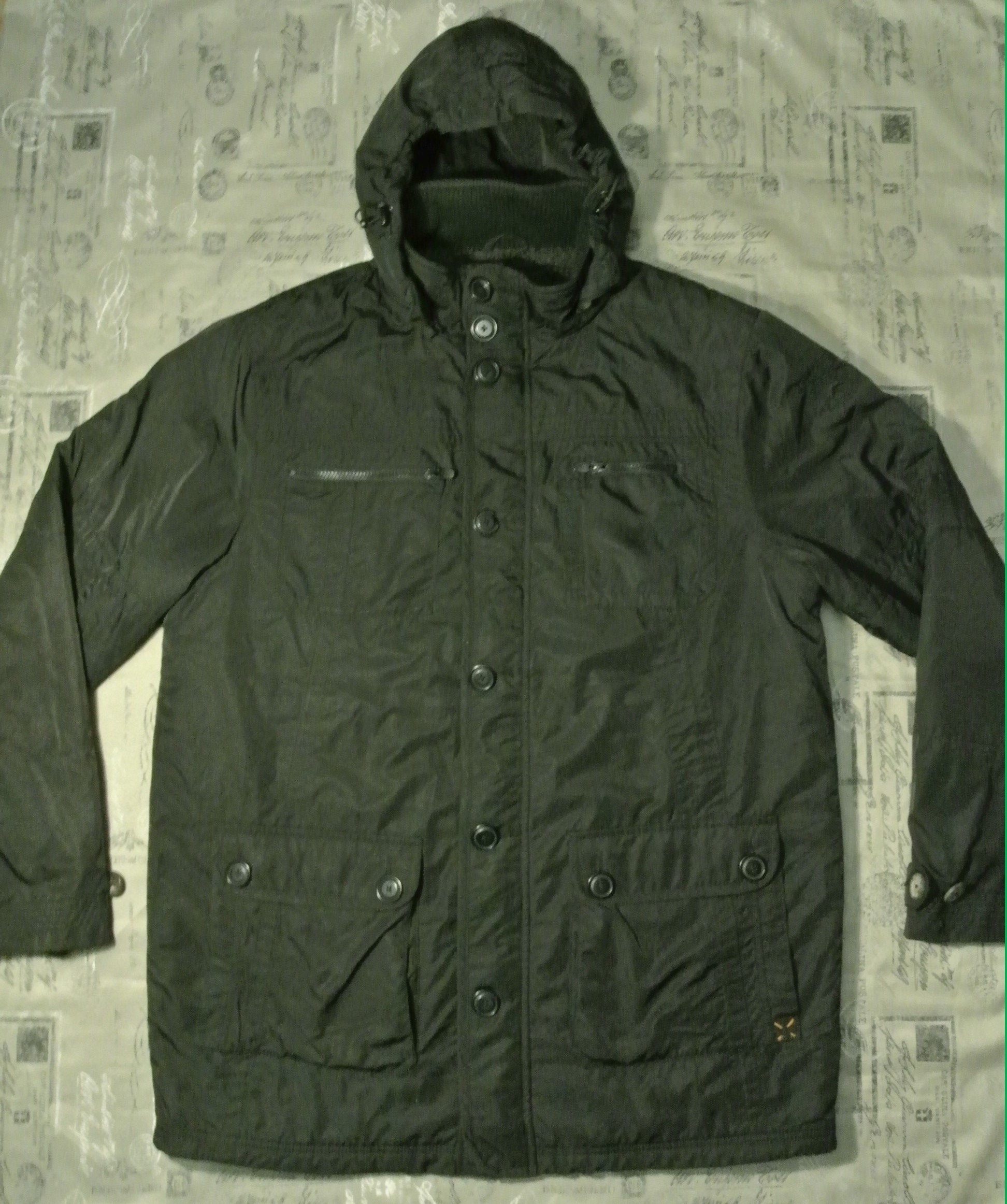 Річ американського виробника у гарному стані. Зовні сім кишень: дві накладні на гудзиках, дві прорізні на блискавці, дві прорізні та одна на велкро. Зсередени три кишені: одна на грудях на блискавці, одна на гудзику, та одна накладна підгумована. Має зйомний каптур на блискавці, що регулюється гумкою з утяжками. Центральна блискавка закривається двома клапанами проти вітра на гудзиках. Манжети рукавів на гудзиках та мають зсередени ще додаткові трикотажні манжети. Виміри : довжина по спині до коміра 84.5 довжина рукав до плеча 68.5 плечі 52 напів охват під рукавами 65 напів охват низ 63см. Продано Прохання ставити резерви у темі і не довше двох годин.