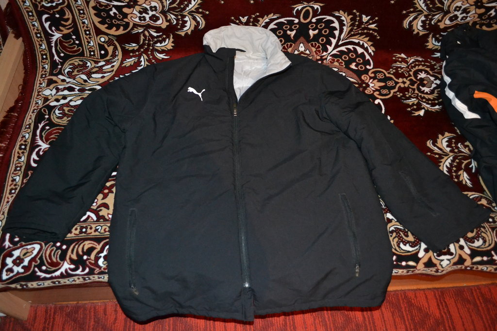 Куртка утеплённая Puma. В хорошем состоянии, без дефектов, нужно простирнуть, капюшон отсутствует, двойной манжет рукавов, на синтепоне. Размер XXL-XXXL, замеры следующие-длина по спине 92 см, плечи 56 см, под мышками 67 см, длина рукава от плеча 67 см, от подмышки 49 см.