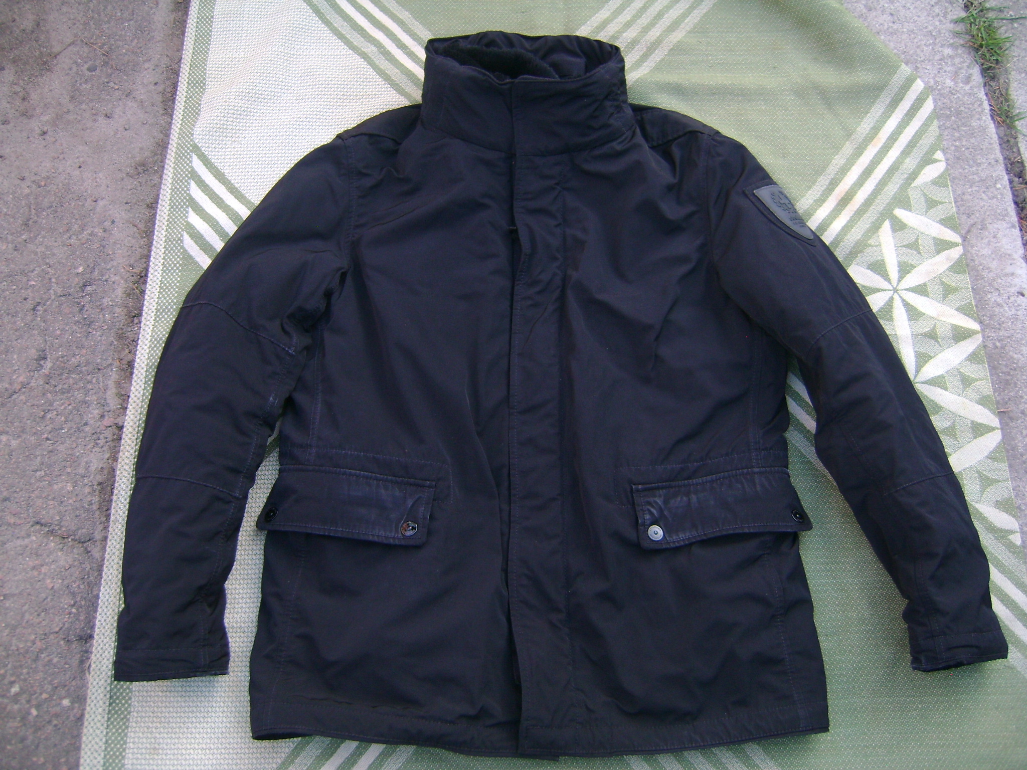Состояние б\у.Затертости на клапанах карманов и швах рукавов.Цвет черный.Сьемная шерстяная подстёжка,капюшон складывается в ворот.Плечи .Цена 400 грн.