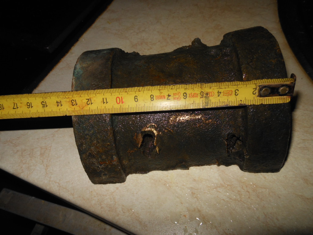 Приветствую . Попался кусок латуни непонятной . Были версии что и от старой пушки .Может кто сталкивался ,осколками побита крепко.