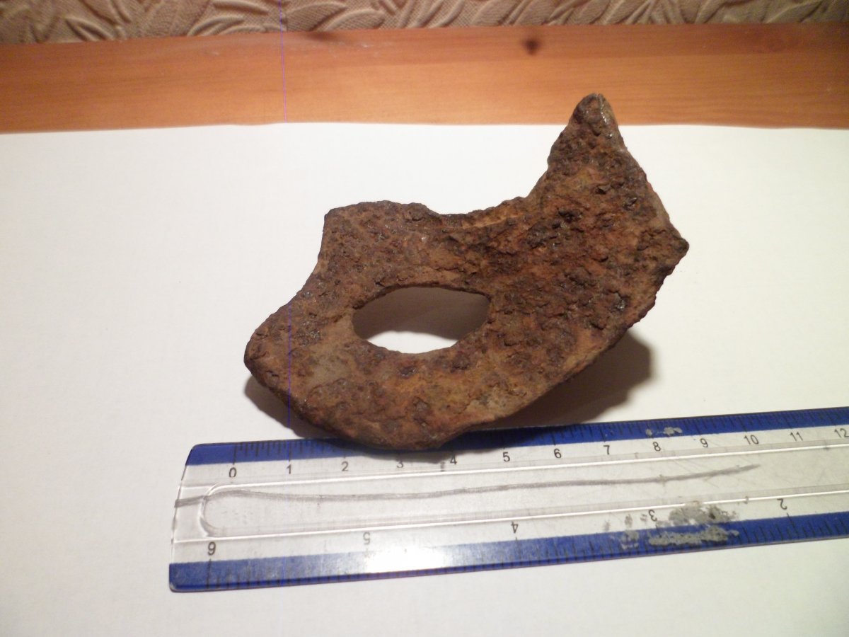 Интересно было бы,если бы Вы отметили на фото,с каких сторон есть изломы,можно было бы говорить о части чего-то целого.Похоже на чугун ,но может быть и ковка,форма интересная.С уважением.