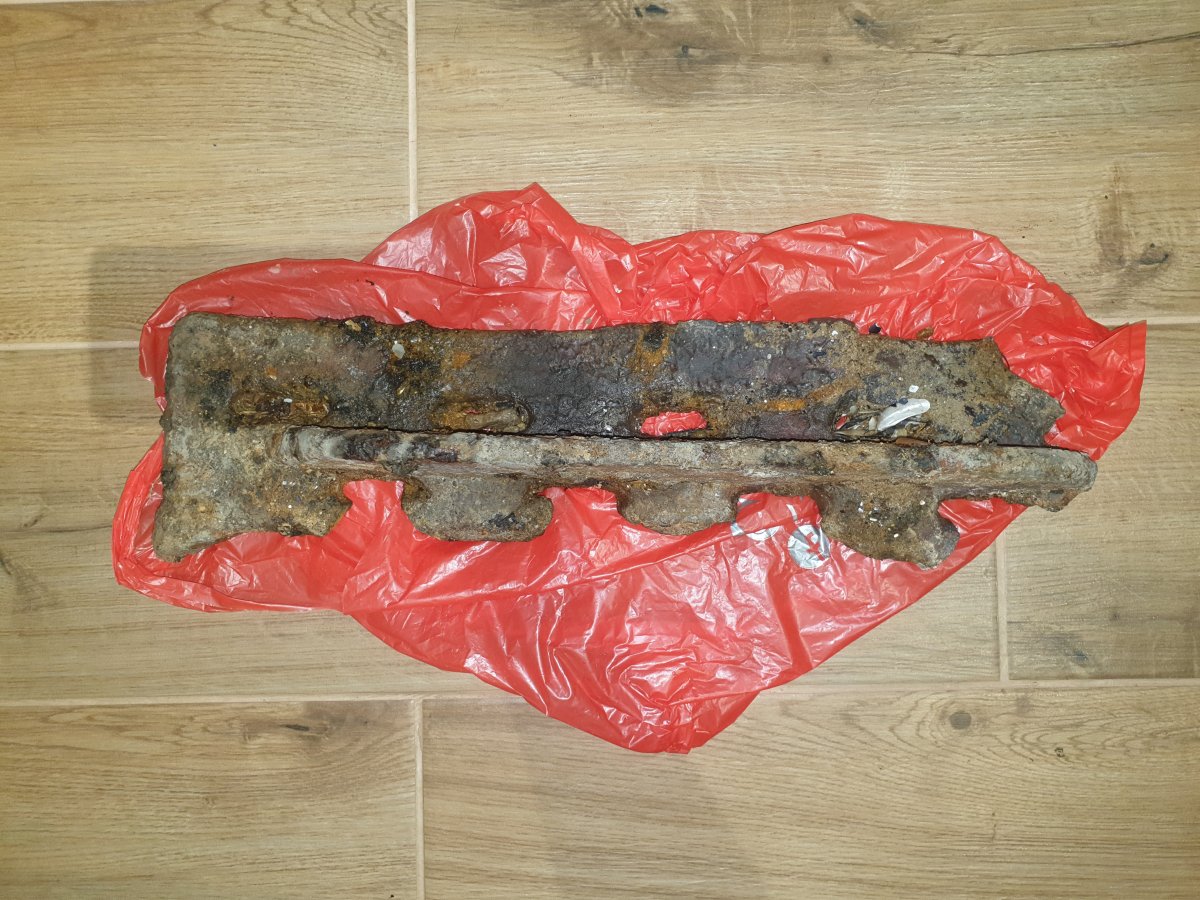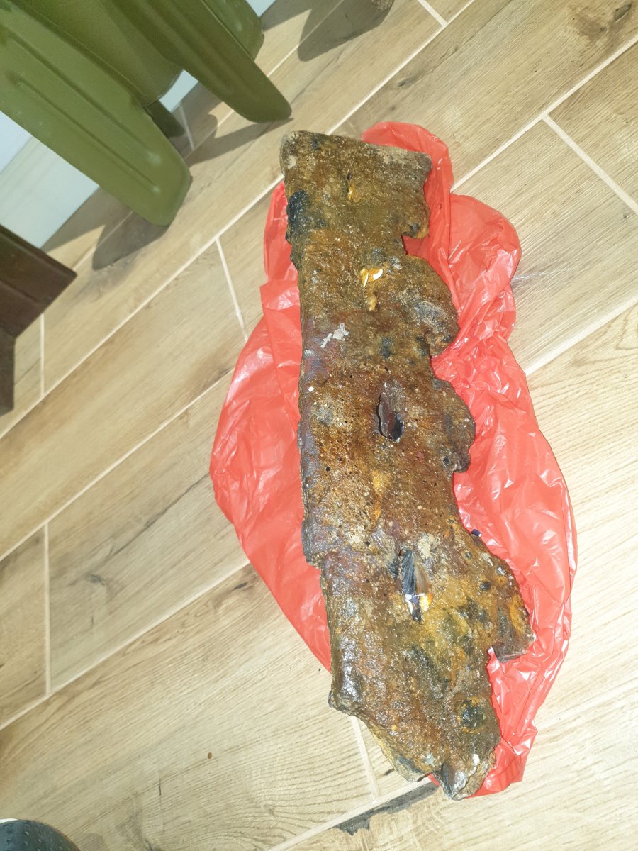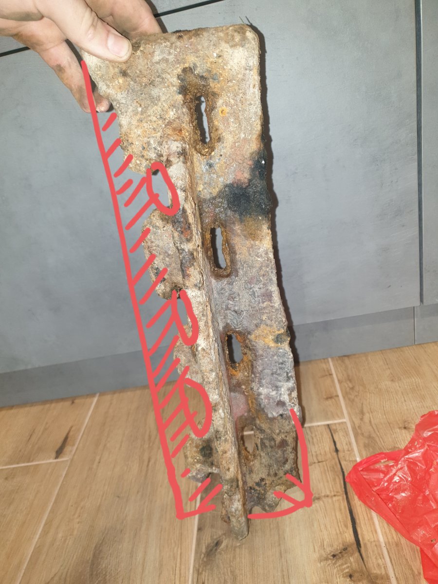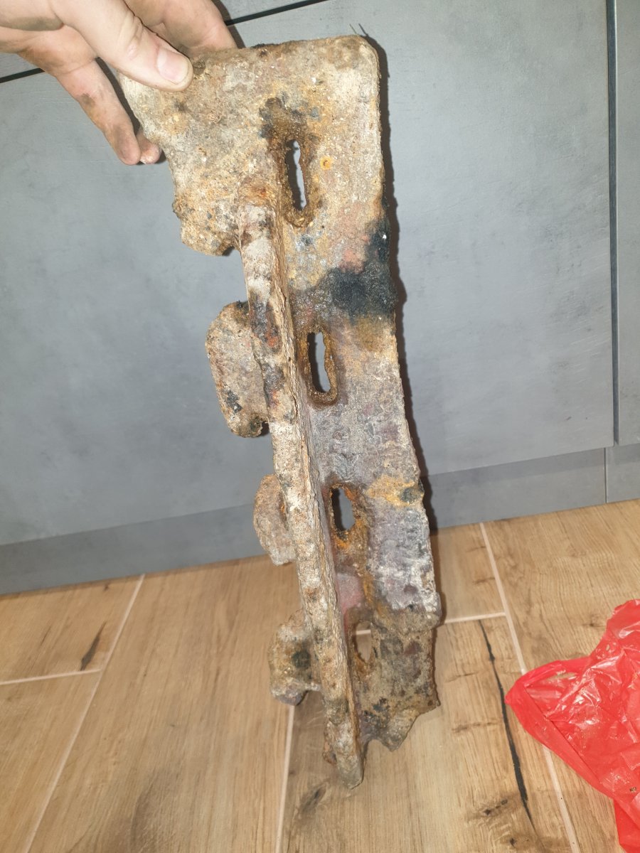 Находка морская, склон уходит в воду, а с ним и железо. Пока не чистил, но если что-то интересное (относительно), почищу и оставлю себе ибо раньше на пляже траков не находил, да и впринципе тоже...:beer: Заранее спасибо! С уважением.