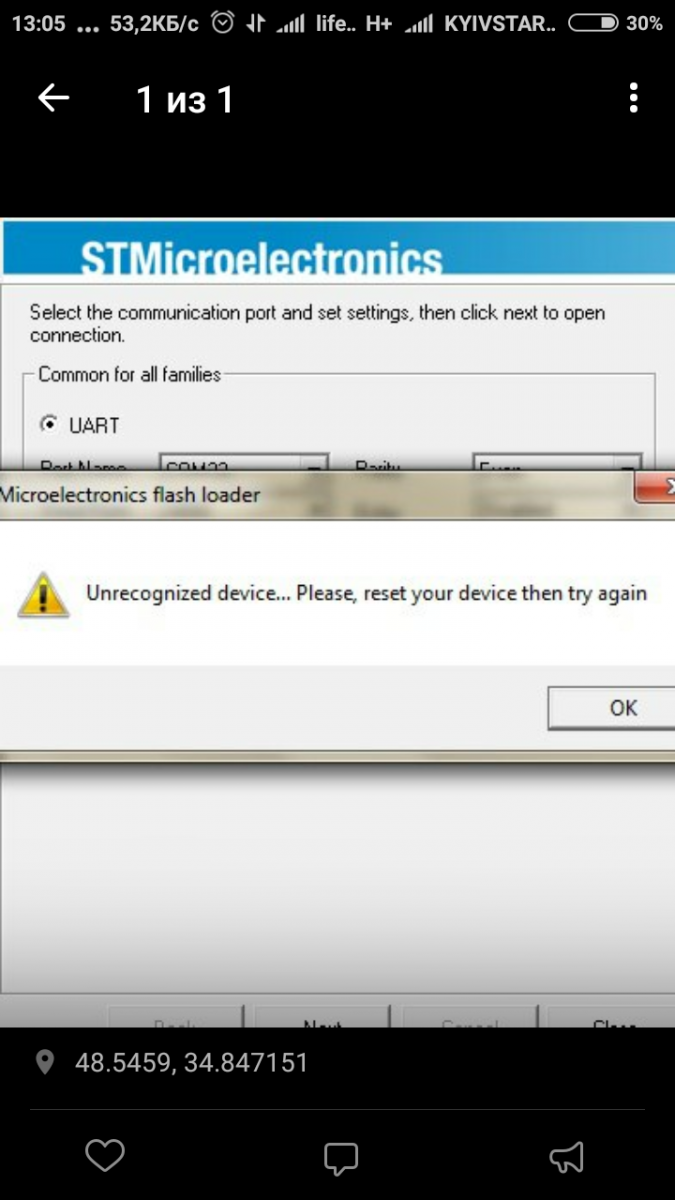 Все подключаю по мануалу, рх тх землю бут замыкаю, подключаю в проге жму некст выбивает ошибку. Програматор комп видит дрова автоматом установлены