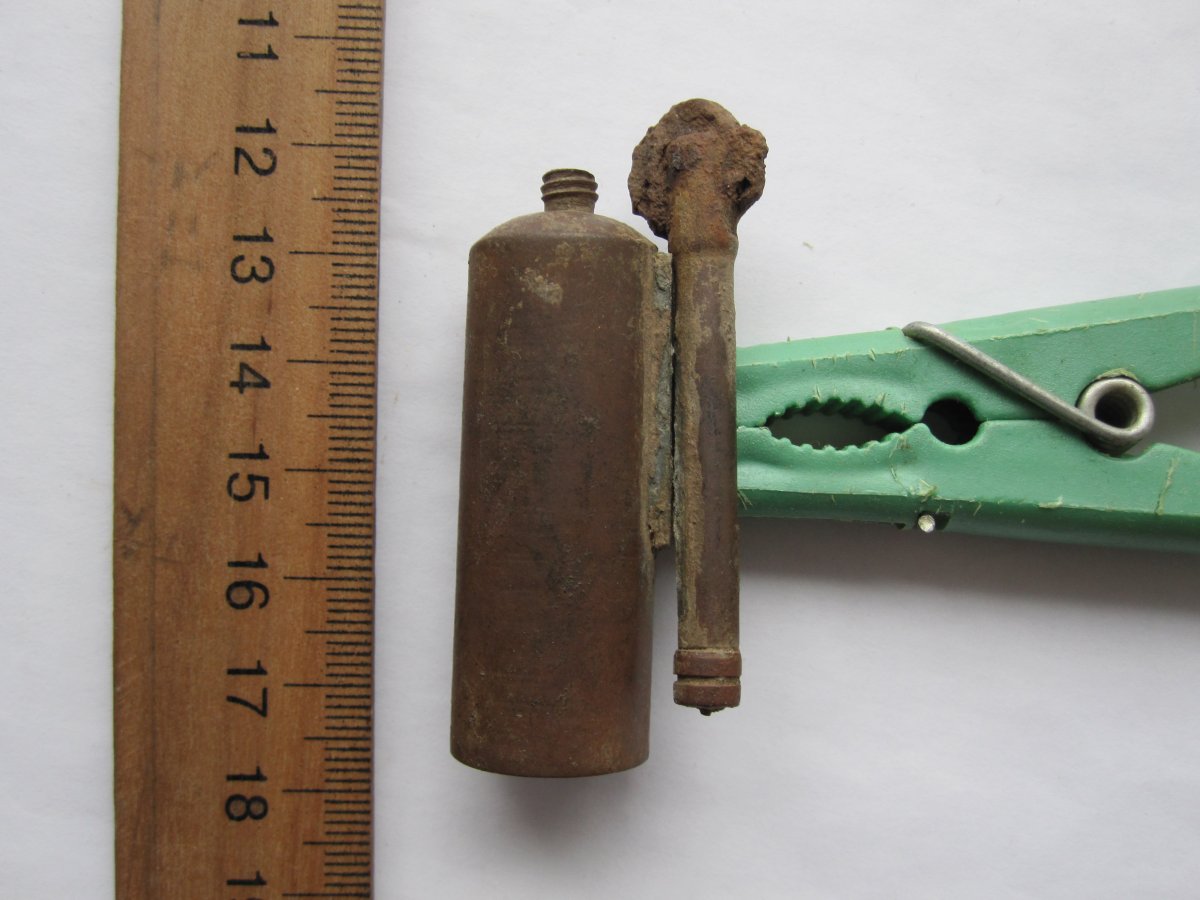 Добрый вечер! У каждого умельца наверное были свои секреты, из чего мастерить зажигалки. Скорее всего не фабричная, но может быть и артельной мелкосерийной работы - на зажигалке хорошо виден "не очень" заводской след пайки. Такую зажигалку мог и какой-нибудь индивидуальный умелец среди солдат смастерить, если под рукой вдруг попадались нужные исходные компоненты для творчества. Тем более, необходимый инструмент у солдат водился. Как пример, уже упоминаемый медный мини-паяльник и кусок припоя, найденные там же, в военлагере: