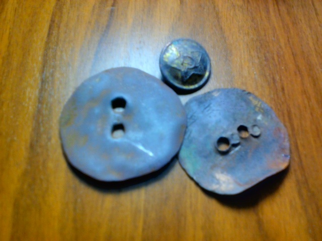 доброго дня.периодически вылазят такие пуговицы.с гнутыми лучами пробовал выровнять но от старости латуни они обломались.лучше бы так оставил.а к отверстиям похоже пришивные даже алюминиевые попадались самодельные.даже с попыткой выбить на ней серп и молот.