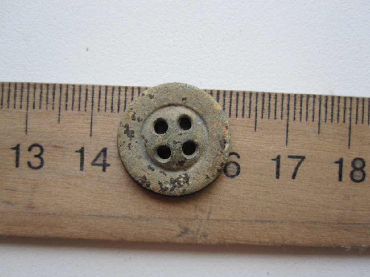 Возвращаясь к пуговицам. На территории лагеря попадается масса пуговиц и не только ркка. Вот например данные пуговицы из цинка очень похожи на ркка. Размер один и тот же , даже дырочки для пришивания одинакового диаметра и одинаково расположены- просто один в один ( на фото №3 одна лежит на одной). Все подобные пуговицы я отношу к германии и их союзникам (если на них нет клейм) - только исходя из того , что цинк был у них очень "популярен" . Информации об использовании в ркка цинка для фурнитуры я не нашел. Но может я ошибаюсь - поправьте.