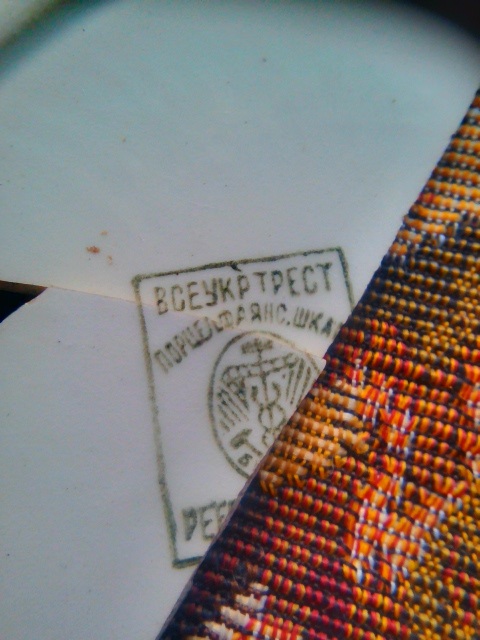 Продолжая тему клейм на посуде из Лагеря, попадались такие (и это ещё не все, нужно посмотреть по сусекам). Взял несколько навскидку: 1. Осколок от посуды Ф-ки им. Газеты "Правда", г. Дулево (версия клейма по 1926-29 гг.) 2. Посуда фабрики в с. Вербилки, клеймо периода 1928-36 гг. 3. Тарелка ВСЕУКРТРЕСТ "Поцелян. Фаянс. Шкло", Довбышевская фарфоровая фабрика, клеймо периода 1926-28 гг. Она родственница той горчичнице, что выставлял камрад magadan 4. А вот это клеймо, со львом - 20-30-е годы, ставилось на посуду, идущую на экспорт в страны Ближнего и Среднего востока и в Африку. Также продавалась и в СССР по линии "Торгсин". В полной версии выглядело так (фото из интернета): И вот такой осколок из немецкого следа в лагере - донышко медицинского пузырька на 200 мл. Внизу характерная аббревиатура D.R.G.M. -продукция стандартизована в Рейхе: