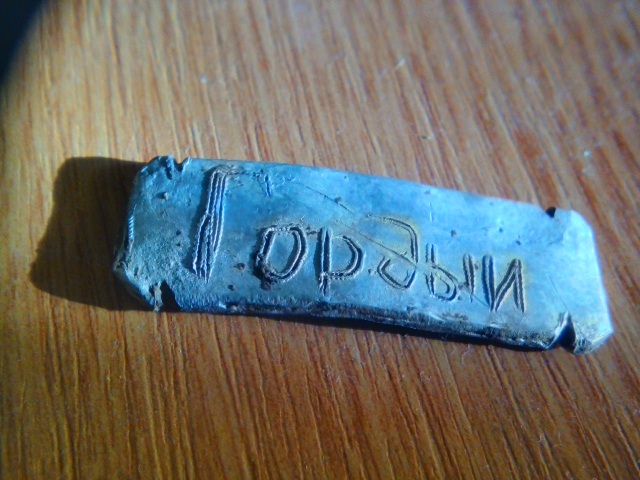 Кое-что из алюминиевых лагерных находок: Крышка от упаковки диафильма. Может, конечно, она из более поздних времён, и оказалась на территории Лагеря случайно. Но в принципе, "Студия Диафильм" была основана в 1934 г, и выпускала поначалу всякие пропагандистские и агитационные плёнки - могли и в Лагере крутить такие. Фото после долгой и тщательной отмывки - судя по первоначальному виду, в песке она была очень давно. Ну, и конечно, продолжение темы нашего "лагерного эскадрона" - алюминиевая бирка с настоящим кавалерийским именем "Гордый". Впервые вижу такой способ крепления - не отверстия, а 4 пропила по углам. Возможно, она проволокой в натяг крепилась к фанерке :