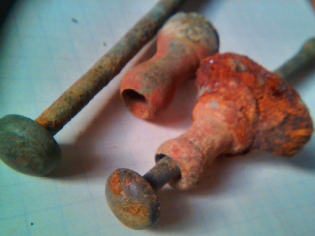 :)Всё работает, штоки движутся, нижние нажимные "пупочки" легко откручиваются (конусная резьба). Пока что ничего не мыл и не чистил. Кстати, там же вместе с рукомойниками попался и кусочек пасты "ГОИ" - может ею дневальные натирали эти штоки до золотого блеска ? :confused::D Рядом же попадались остатки ржавой трухи - возможно остатки бачков :rolleyes:.