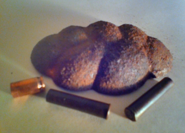 Померил - так и есть: 51,6 мм вместо положенных 54. Причём, не видно, что её подрезали или укорачивали, и тем более не видно следов отрыва при выстреле.