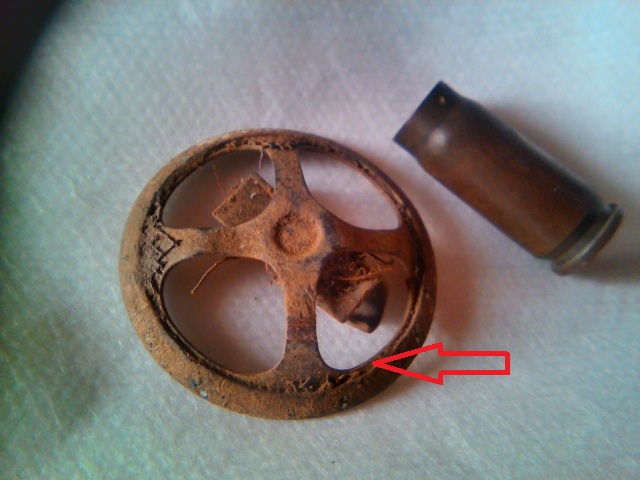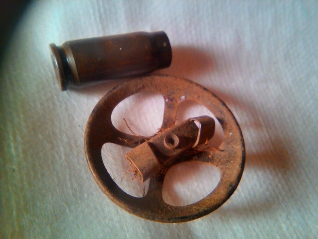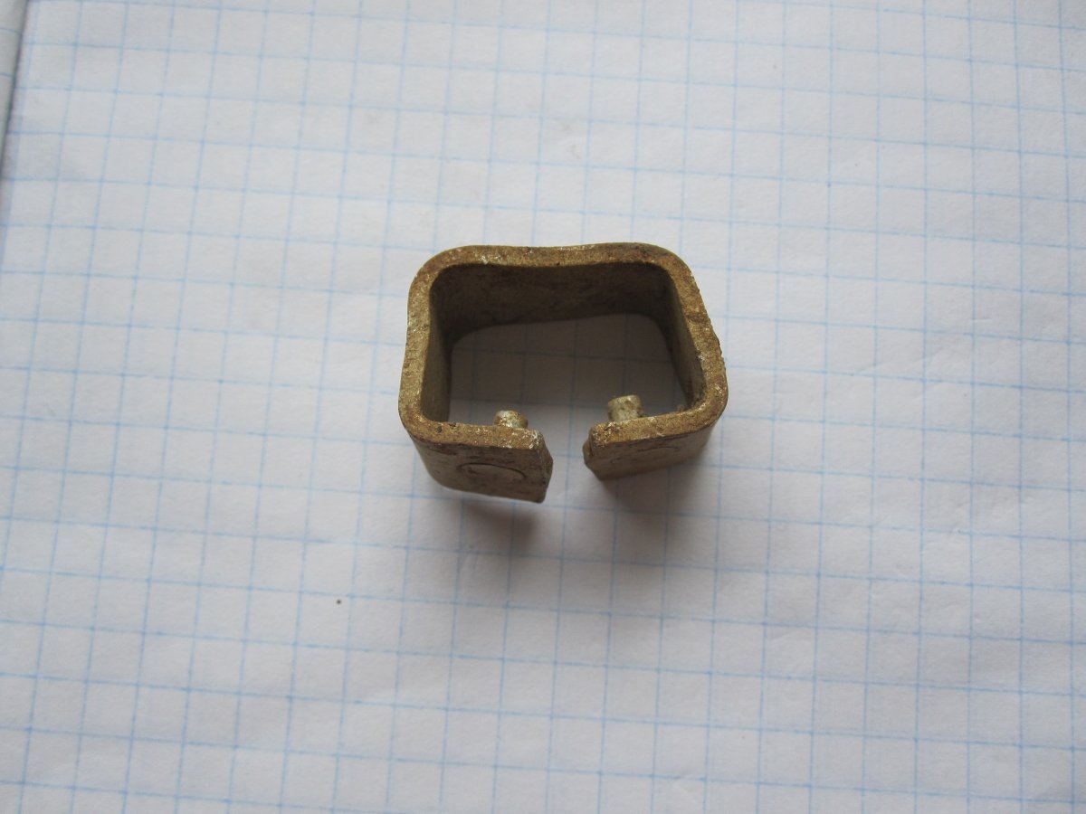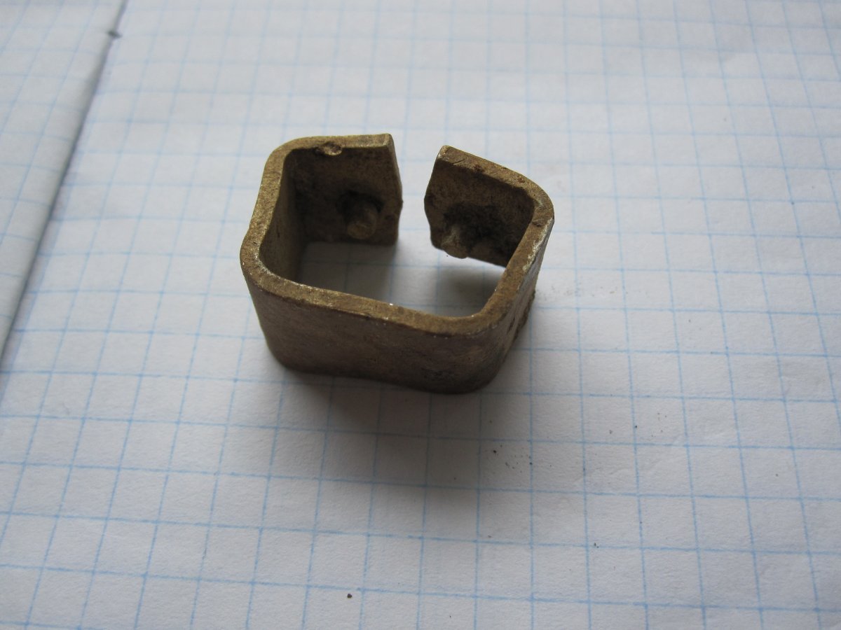 Добрый вечер! Продолжение по лагерным находкам. Вот такая деталька от какого-то механизма, сделана из латуни. С одной стороны была закрыта мелкой стальной сеткой (для фильтра? ) Сетка прогнила и отвалилась, остатки её видны на фото 2: