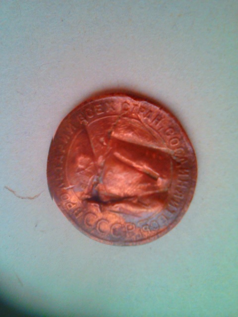 Продолжают удивлять лагерные монеты, к которым человек "приложил руку". Были здесь у нас монеты-мишени, с простреленными гербами, символами государства. А тут особый случай - кто-то "вручную" конкретно поиздевался над монетой (1 копейка 1924 г.) Возможно, просто отвёрткой её изуродовали, причём - с обоих сторон. Гербу досталось больше всего: