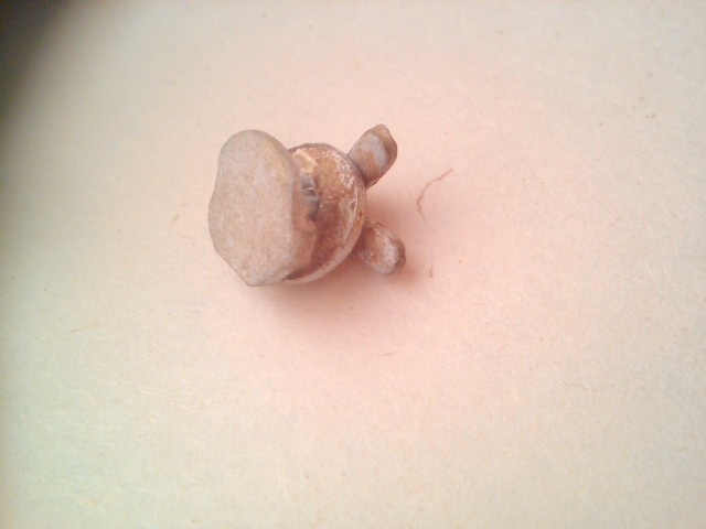 Вот в продолжение истории по алюминиевым лагерным находкам. Какой-то непонятный кламмер, или что-то вроде того. Сделан составным - шляпка с двумя усиками и отдельно надетая шайба.
