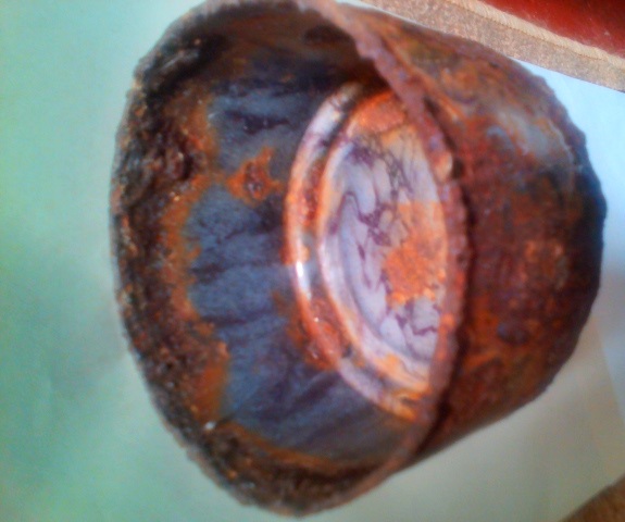 Почти такая история,только вместо котла косервная банка,причем верховая,внутри непонятная субстанция и ложко-вилка внутри но железная.