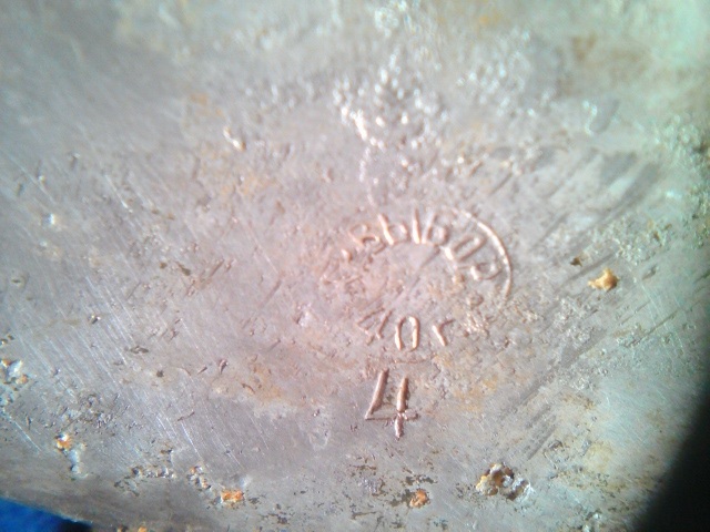 Добрый вечер! Восстановил из запасников 2015 года крышку РККА на котелок, из Лагеря. Почти до половины высоты была забита какой-то пригоревшей массой, еле отчистил. Лежала на ямке, которую мы до конца не доработали ещё в 1978 г, так и прождала она ещё 40 лет... Сам удивился. Есть клеймо "Кр.Выборг 40 г." и нацарапанная буква "Д". В нескольких местах сохранилась краска "хаки".