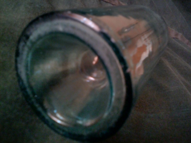 Есть и ещё одна, побольше этой раза в 3 (и похоже, что она как минимум, литровая), но форма классическая. И ручка на месте. Только размер кружки заметно больше, чем у стандартных лагерных кружек. Её пока что припрятал, до случая. Ну, и есть ещё бутылёк - чекушка, 0,250 Л, а точнее даже будет 0,275 Л, горлышко под сургуч, тонкая работа.... ваххх! Уж не немецкий ли след? Но её представлю завтра - пока отмокает перед отмывкой.
