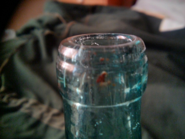 Добрый вечер! Вот подготовил бутылёк, о котором вчера писал. Похожа на ту, что выставил камрад А10А, но есть отличия. Донышко имеет внутри полый конус, глубоко уходящий внутрь бутылки: Кстати, ранее неоднократно встречал отбитые донышки с таким конусом во внутрь. Горлышко не так четко выражено выступающим буртиком, как на Вашей, более сглажено: И на нём даже сохранилась капля сургуча от укупорки: Всё-таки, скорее всего, это никакой не "немецкий след", а одна из версий отечественной водочной "бутылиады" 1930-х - 40-х годов, емкость 0,275 Л (специально замерил! ). Нет на ней никаких клейм, что для немцев не характерно. А для меня она оказалась недостающим звеном в цепочке калибров малых водочных бутылок (т.е. менее 0,400 Л) в коллекции. Теперь вся "линейка" малых водочных форм в сборе, представлена по возростающей - 0,100 Л; 0,200 Л; 0,250 Л; 0,275 Л. В одной из них внутри видна оригинальная "родная" пробка. Все они без клейм. И что любо-дорого - все они из Лагеря, найдены в разные времена. Есть у меня также и пол-литровка из этой "под-сургучной" серии, она скоро будет отмыта и представлена здесь. Остаётся мечта найти ещё 0,400 Л, есть информация, что такой литраж тоже был. Пока не встретилась...