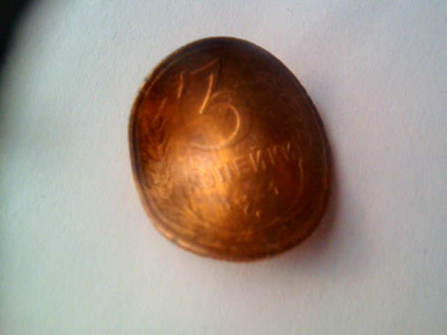 В продолжение о монетах-мишенях в Лагере. Вот такая 3 коп. 1931 года. К сожалению, на фото не видно мелких подробностей, но в живую хорошо видно, что причиной такого повреждения монеты стало попадание мелкокалиберной пули (скорее всего именно её), т.к. на колоске монеты видно чёткий круглый отпечаток как раз такого калибра: Причем, явно видно, что монета к стрелку была обращена "решкой", А НЕ ГЕРБОМ! , Значит, лояльное и осторожное отношение к гербу соблюдалось, чтобы не давать повода для размышлений особистам . Есть предположение, что для удобства установки мишени типа "монета" использовался тонкий деревянный прутик, имевший расщепление на кончике. В это расщепление вставлялась монета, а второй кончик прутика втыкался в грунт. Очень похоже было и в тирах нашего детства - помните эти металлические кружочки размером с "пятак", надетые на рычажок падающей мишени? И сколько пулек улетало в "молоко" (при цене выстрела 3 коп - а это была цена 3-х коробков спичек! ), прежде чем случалось таки угодить в кружок?!