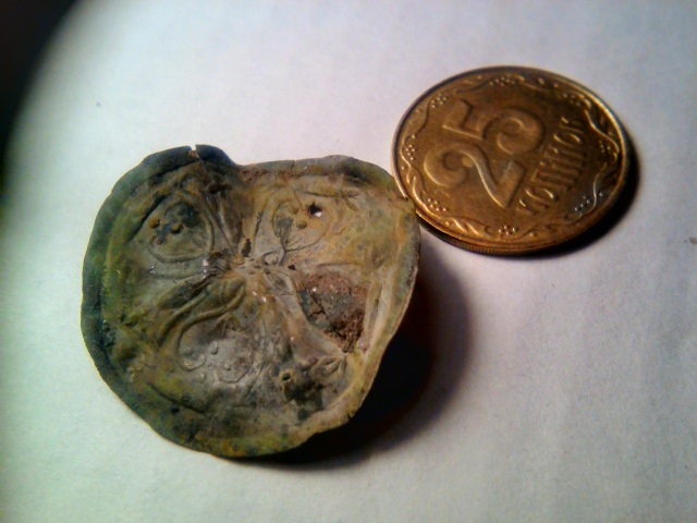 да какой там солдатский оберег. мне видится "дукач " (женское украшение ). по годам наверно век 19 й. (все таки штампованная латунь- постарше были литье) на дукачах зачастую была религиозная тематика. как находка - зачет