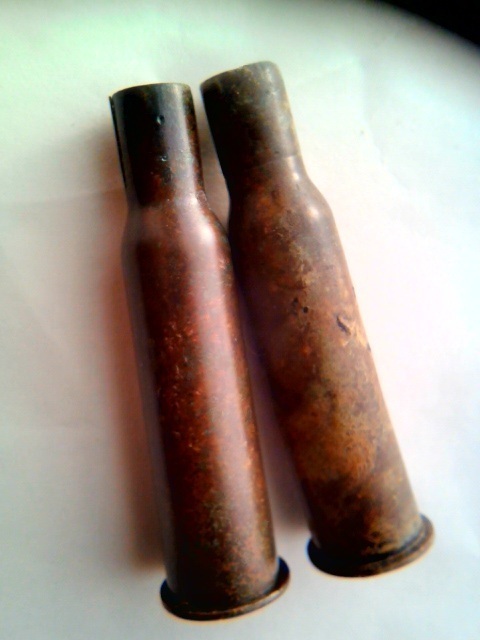 Да, может быть - профилактическая стрельба по сторонам от дороги на предмет отпугивания партизан. Ведь не так далеко от тех мест был район действий отряда Карнаухова. Поэтому, как говорят, пуганная ворона каждого куста боится А может, всё-таки был бой, весной 1942, когда немцы двигали линию фронта на восток. Или наши окруженцы тогда же там отбивались. Там ведь не пойми что творилось, когда фронт рухнул южнее Харькова. Сколько "котлов" там было, больших и малых, только один Бог знает... А возможно, что и наоборот, немцев к реке прижали в июле 1943-го, и в котле рубились уже они... Кто его теперь знает. В районе высоковольтки и по 43-му году маузеры попадались - вот эта (латунь!) как раз оттуда: