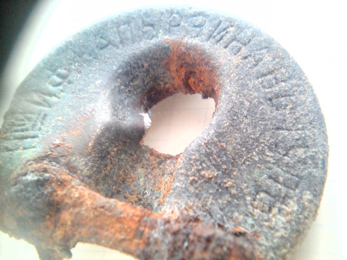 Ух ты, надо же! А ведь я нашёл его в соседстве с этой крышкой от цинка (фото см. выше) и всякой прочей ржавой трухой, совершенно с медициной не связанной. Хотя, по Лагерю у меня уже достаточно серьёзная экспозиция подобралась на медицинскую тему. Отложу туда же и этот клапан