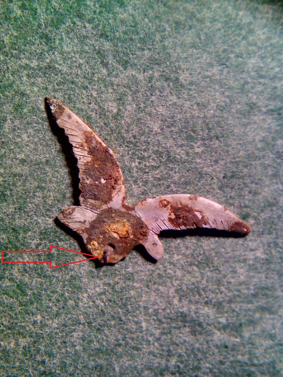 Ещё одна деталь - если присмотреться, в "когтях" у этого орла была какая-то дополнительная подвеска, сохранилось остатки подвесного колечка из тонкой сталистой проволоки: