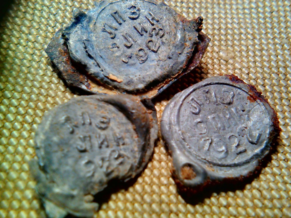 Все пломбы "жители" Лагеря,удивляет такое наличие до революционных,возможно пломбировались где-то на военных складах при царе ,а скрывались в Лагере при Советской Власти.