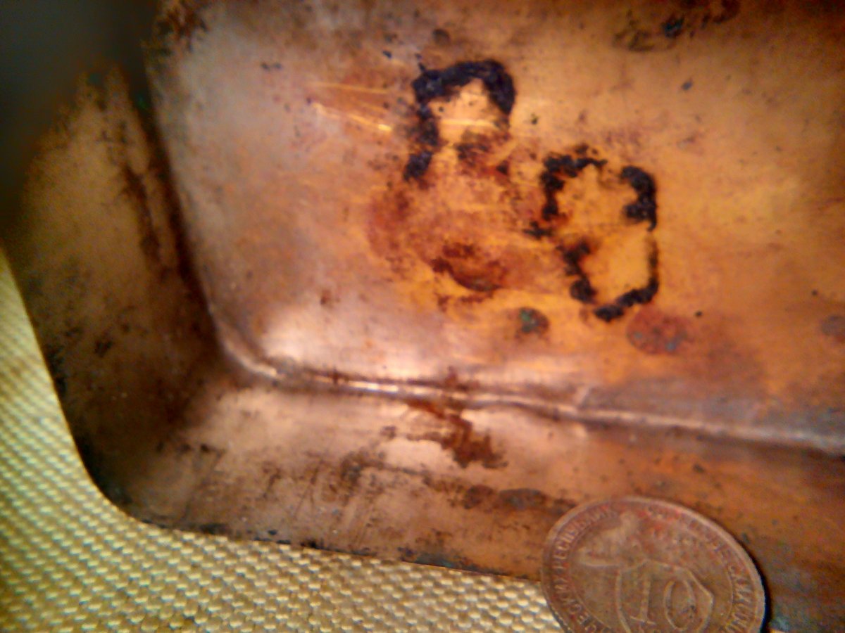 Внутри местами сохранилось покрытие, только не понятно какое - то ли никелирование, то ли остатки серебрения:confused:. Слой покрытия очень тонкий, снаружи коробка покрытие практически не сохранилось, но оно изначально и снаружи было.