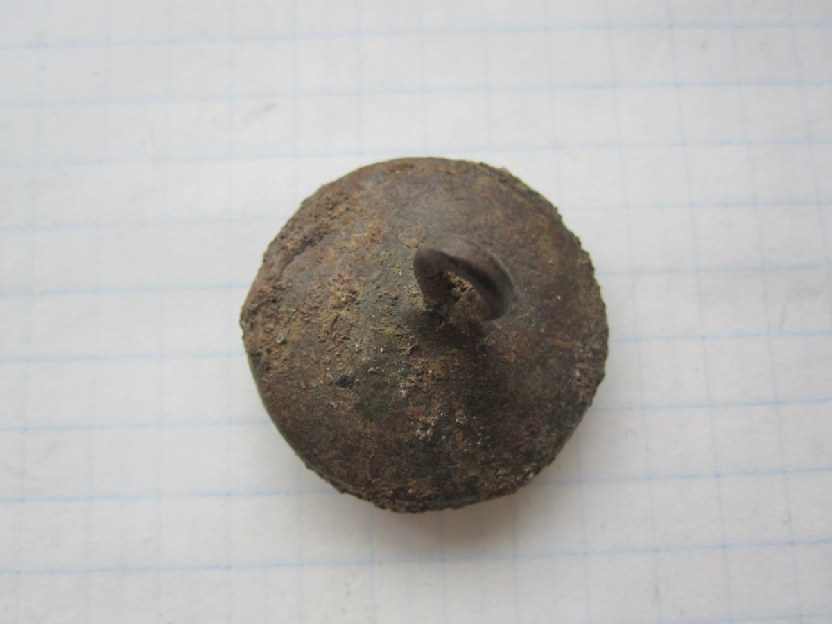 Вот для сравнения пуговица примерно 18 в. Среди камрадов называемая "дутая , казачья". Материал бронза-латунь, внутри пустотелая .