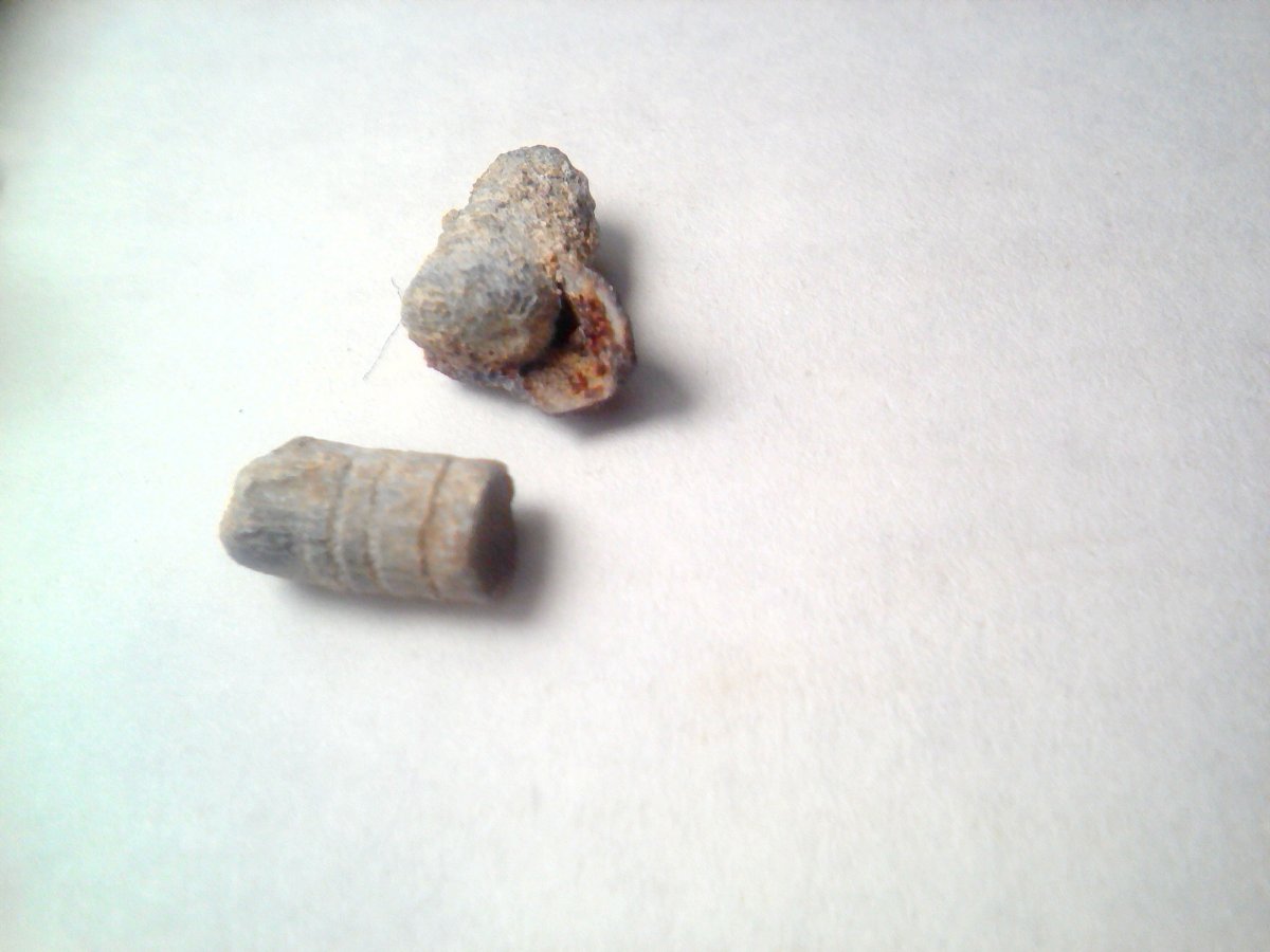 И скорее всего, не найдёте. Потому что малокалиберные свинцовые пульки встречаются абсолютно во всех отвалах-пулеулавливателях всех лагерных стрельбищ и в ближайшей округе. Уверен, что специальных стрельбищ, созданных конкретно под стрельбу МК-боепипасами в лагере не было. Да и незачем это было обустраивать, если есть уже готовые оборудованные места для стрельб. Лишний раз я в этом убедился прошлой осенью, когда в одну из крайних поездок наткнулся на ещё одно, ранее мною не виданное стрельбище (хотя ходил там рядом очень много раз). Это недалеко от ЛЭП, если идти от Бондаренко на Запад, возле Большой поляны. Стрельбище какое-то необычное, очень узкое, не более 3-3,5 метров в ширину. Тянутся параллельно два бугра-отвала, в конце - откос (пулеулавливатель). Я и подумал - ну вот оно, наконец-то узенькое, чисто спортивное стрельбище! Ан нет, с первых же копков в откосе полезли ржавые (биметалл) пули Мосина и ТТ/ ППШ.... И там же среди Мосинов в придачу нашлись несколько мятых пулек МК. Вот наиболее целые из них (в верхней пульке застрял кусочек тонкостенной ржавой жести): Так что, оказалось это стрельбище тоже самым обычным, РККАшным. Причём, судя по ржавым биметалл-пулям (никаких других не было) - стрельбище явно позднего предвоенного периода. Но и на нём тоже стреляли из мелкашей. Похоже, что специальных спортивных стрельбищ там, скорее всего, нет. Во всяком случае, в пределах территории лагеря. Стреляли на обычных. Другое дело, на каком расстоянии находились на них позиции для стрельбы из мелкашек - это вопрос открытый. Ну, явно не со 100-150 метров, как для "взрослых" калибров, а намного ближе.