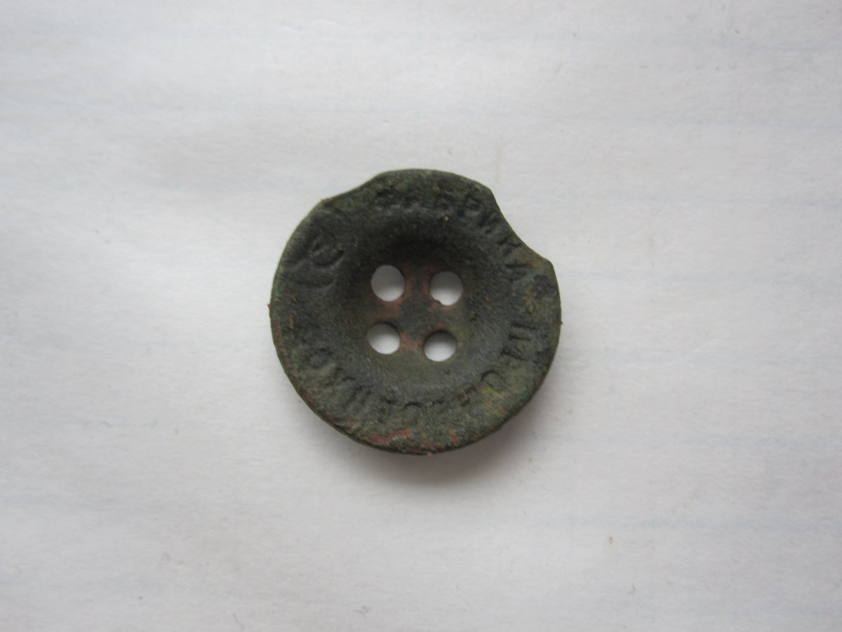 Вернемся к пуговичкам промвоенхоза. Вот такой ,на мой взгляд, интересный образец. На пуговице имеется "выкус" - смещается заготовка и откусила одна пуговица от другой . Причем не один , а сразу два. Вот так работала военная промышленность в те годы- и такой брак отправлялся и принимался в армии.