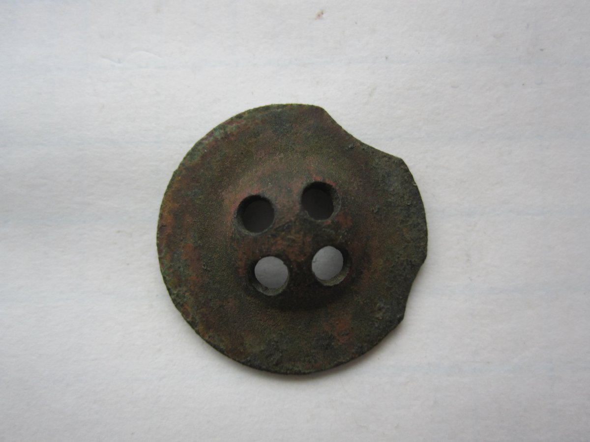 Пуговица по своему уникальная - такого рода сбои штамповочного оборудования случались не часто. Я первый раз такую вижу. Возможно, такие отклонения не считались окончательным браком и были предусмотрены в пределах допустимых отклонений. Ведь не смотря на эти "откусы", пуговицей можно было пользоваться по назначению.